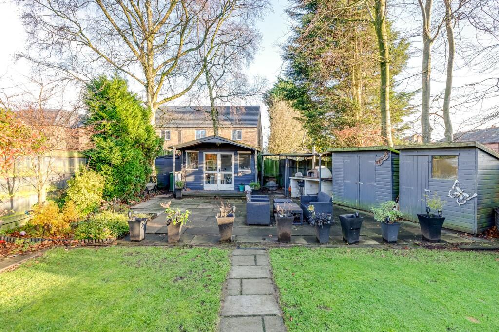 This is a detached property located on Shelley Drive, Orrell, Wigan. It features 5 bedrooms and 3 bathrooms. The property appears to be in good condition, with modern fixtures and fittings. It also benefits from a good-sized garden with a shed and a patio area. The property is located within 1km of two schools and within 2km of Orrell train station. The list price of £600,000 seems high compared to the average price in the area.