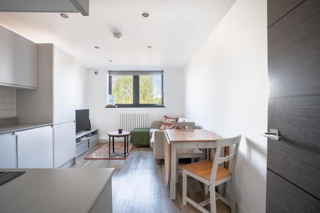 This property is a modern one bedroom flat located in Southville, Bristol. The flat is well presented and appears to be in excellent condition, having been recently renovated. The location is good, with several primary schools within a short distance, and good transport links to Bristol Temple Meads. However, the price per square foot is significantly higher than the average for the area. While the flat itself is modern, the surrounding area shows a mix of property types and values.