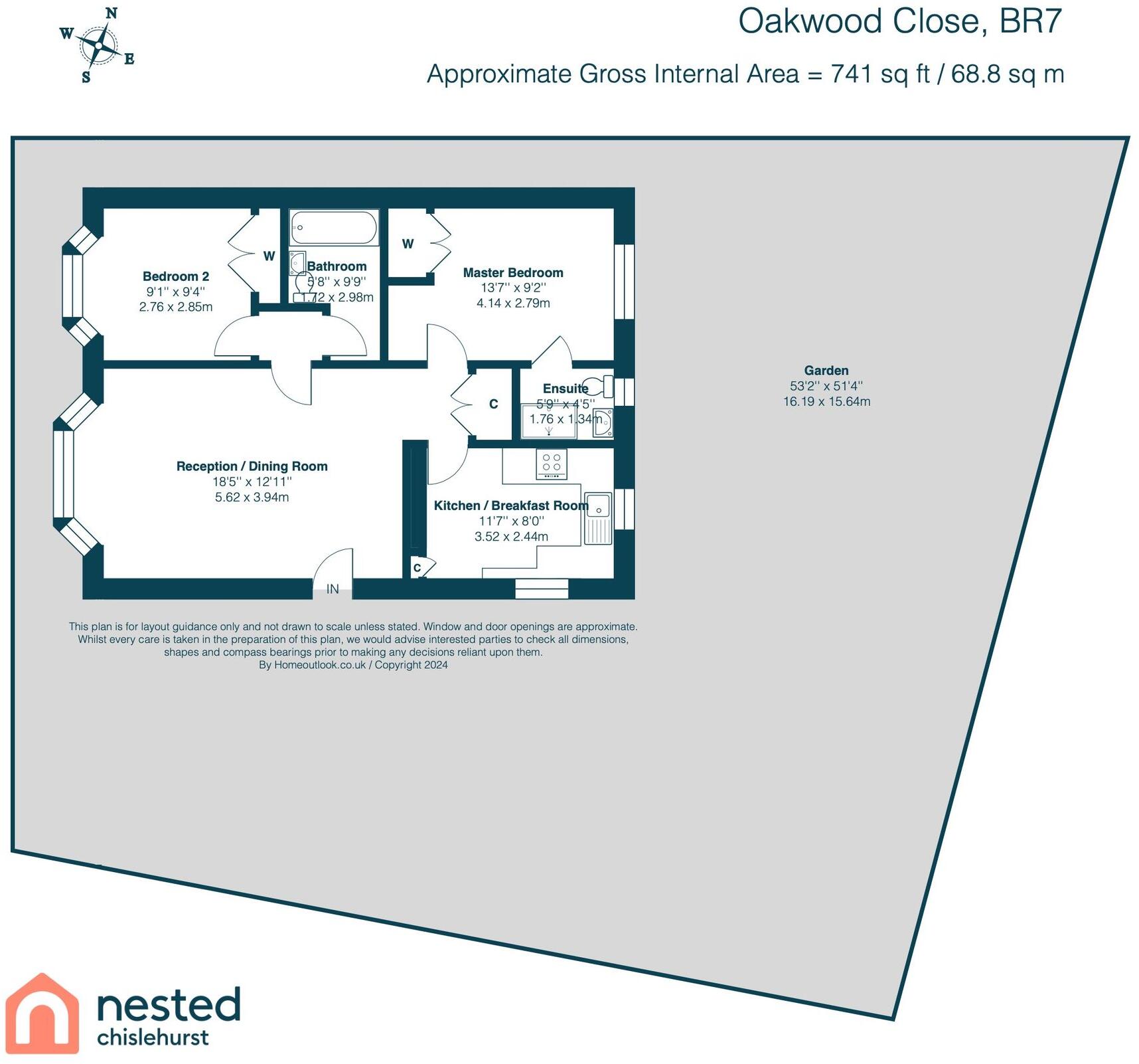 This property is a 2 bedroom, 2 bathroom detached house located on Oakwood Close in Chislehurst, Bromley. The property is listed at £525,000 and has 741 sqft of living space and an 826.60 sqft plot.
