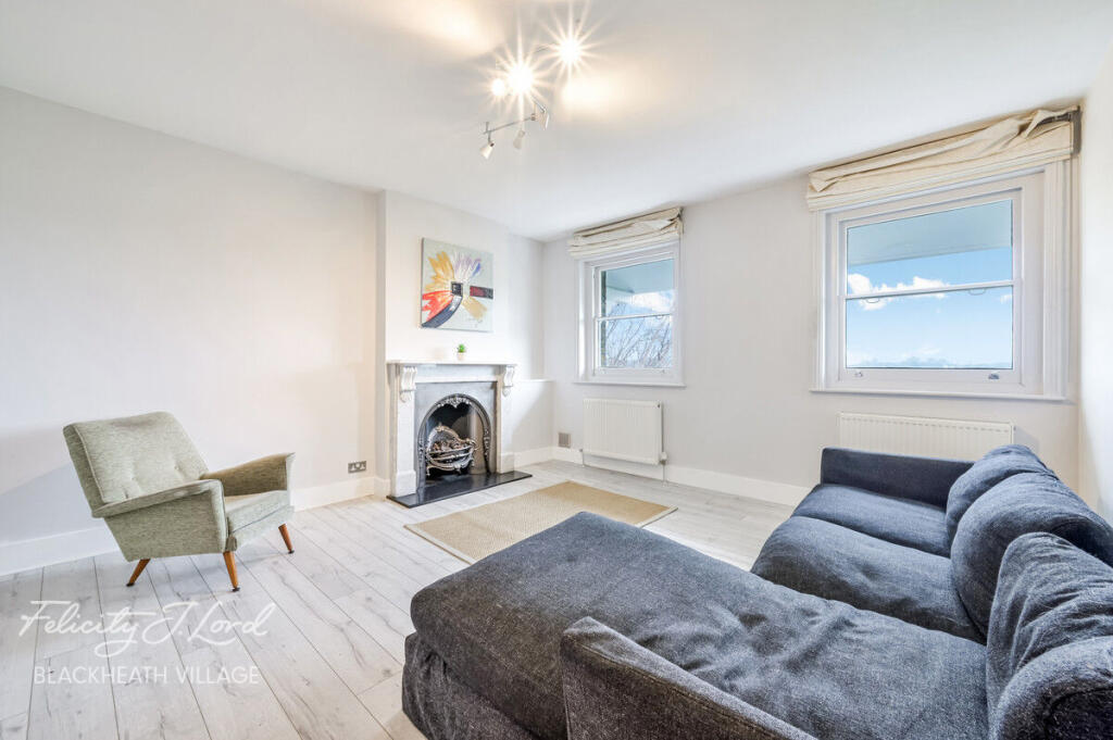 This property is a 2 bedroom, 1 bathroom apartment located in Blackheath, Lewisham. The apartment is in good condition and appears to have been recently renovated or updated. The kitchen and bathroom are modern and well-equipped. The property benefits from a fireplace and what seems to be views over Blackheath common. The location is excellent, with easy access to Blackheath station and several highly-rated schools nearby. The list price of £750,000 seems reasonable considering the average price per square foot in the area, but more information would be needed to make a definitive statement on the value.