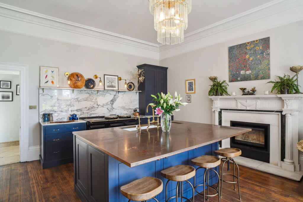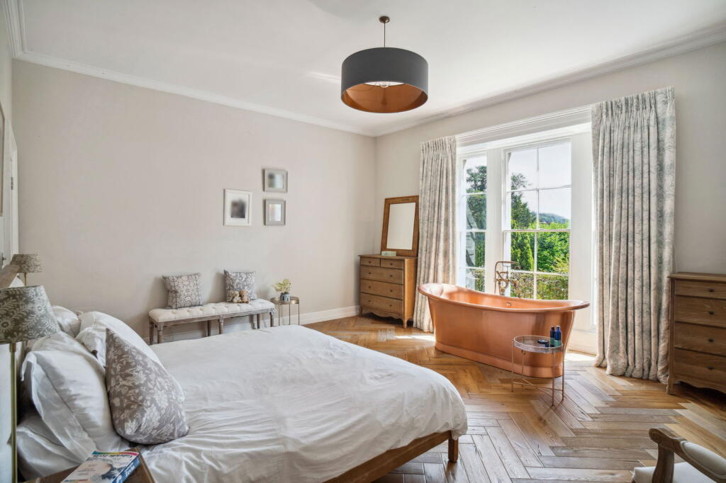 This is a substantial terraced property located on Uley Road in Dursley, Gloucestershire. The house features six bedrooms and six bathrooms, offering ample space for a large family. The property is conveniently located near local schools and transportation options, including the Cam And Dursley train station. The interior of the house appears to be well-maintained, with modern kitchens and bathrooms. The property also boasts a large, well-manicured garden and a separate patio area, providing ample outdoor space. However, the list price of £1,350,000 seems high compared to the average property prices in the area, even considering the property’s size and condition. The property is listed with James Pyle & Co.