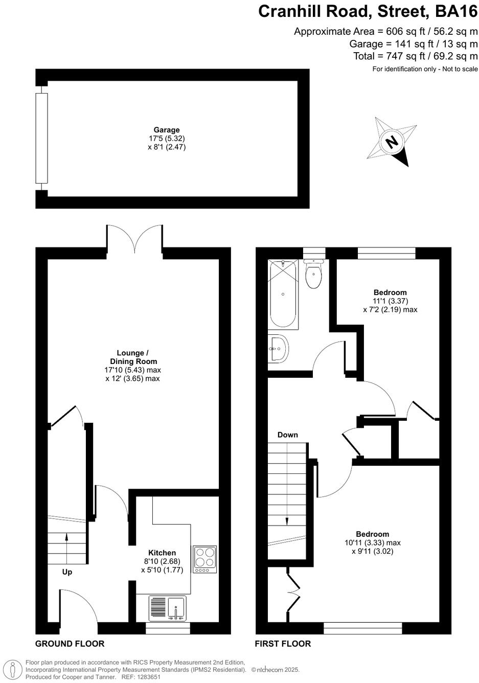 This property is a 2 bedroom, 1 bathroom terraced house located in Street, Somerset. The list price is £220,000. The property has a plot size of 747 sqft and an internal area of 579 sqft.
