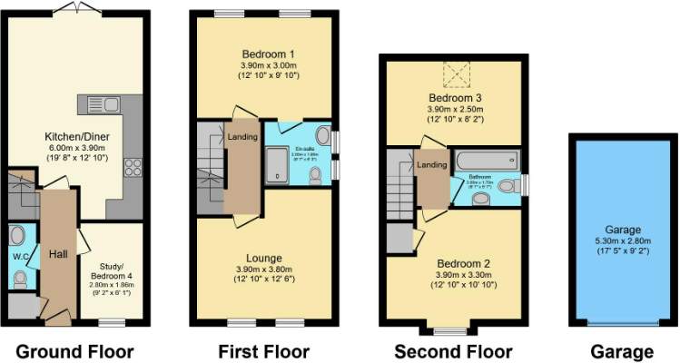 Spacious Three Storey Semi Detached Home offering versatile living with three double bedrooms and a modern layout. The ground floor includes a stylish kitchen diner with patio doors, a study, WC, and hallway storage. On the first floor is the master bedroom with en-suite and a bright main loun...