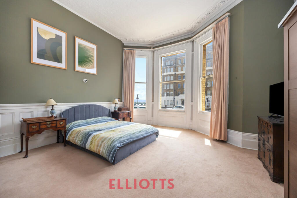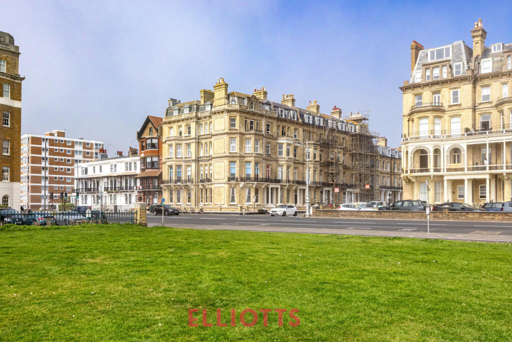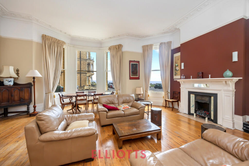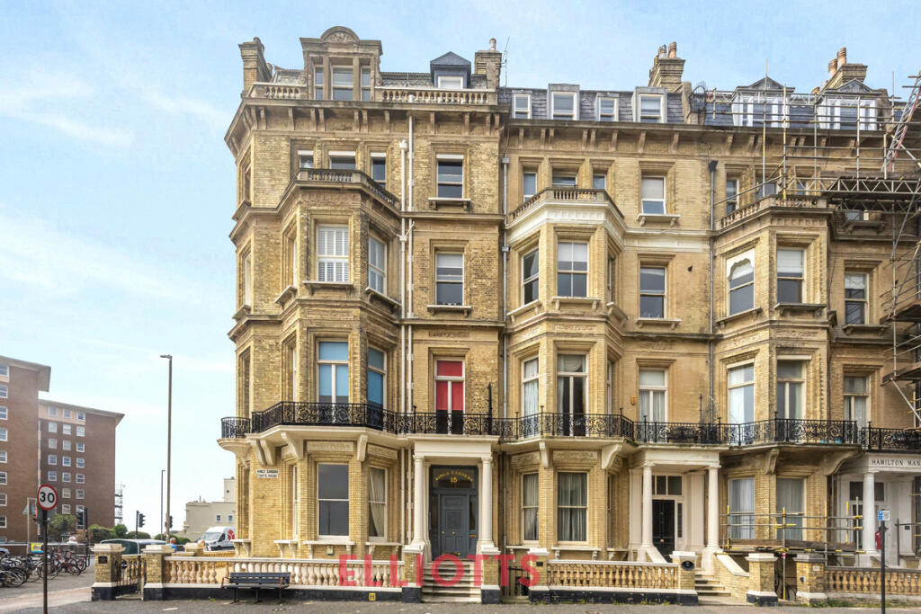 Stunning seafront apartment in a Grade II listed Victorian mansion on Kings Gardens. This spacious 2-bed home features a grand 23' x 22' living room with sea views, period features, high ceilings, and two bathrooms. Share of freehold, chain-free, and moments from Hove Lawns and Church Road