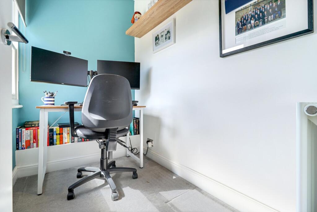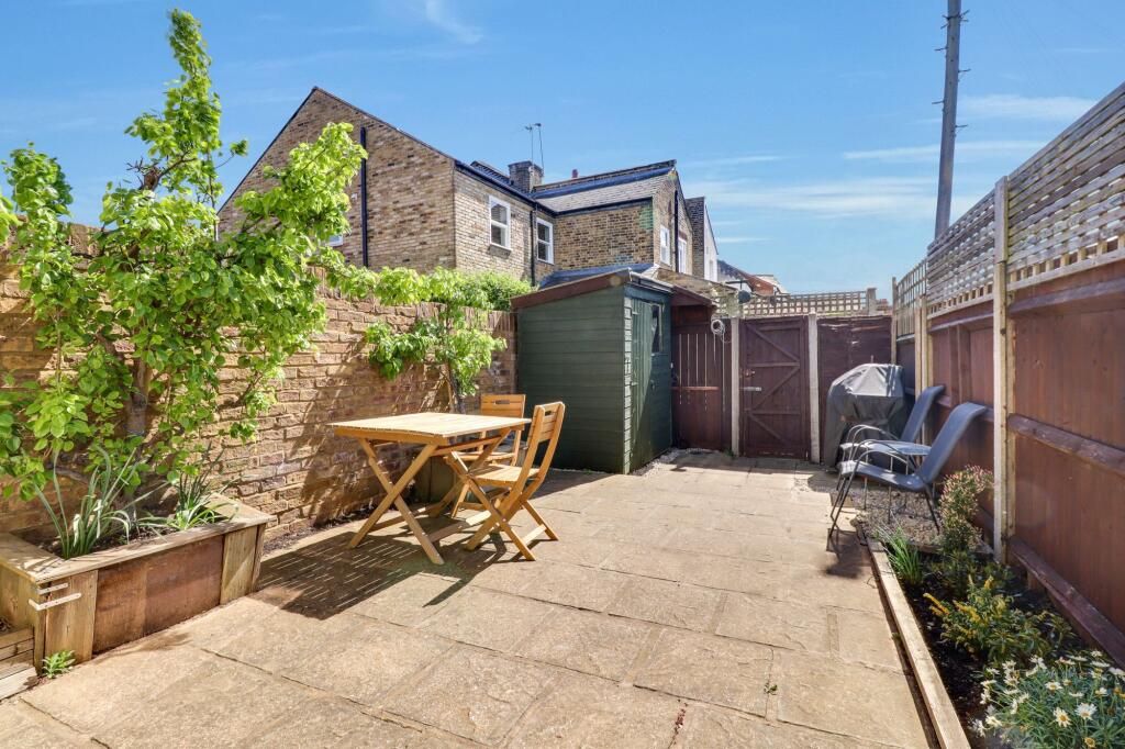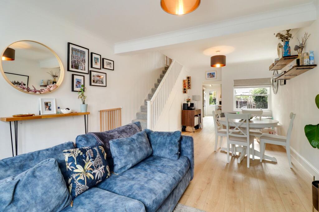Immaculate period home near Hampton Court Village, with 3 bedrooms, modern kitchen, off-street parking, planning for extension, and a sunny low-maintenance garden. EPC rating D.