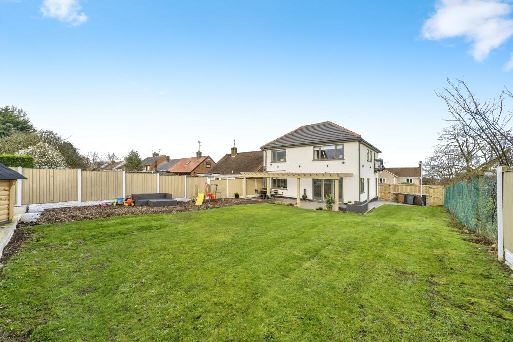 The property is a 4-bedroom, 2-bathroom detached house with a sizable plot. The images show a recently renovated or newly built home, with modern fixtures and fittings throughout. The property benefits from a large garden, patio area, and a substantial driveway. The location is described as tranquil, yet conveniently situated near amenities and transport links. However, without specific pricing data for comparable properties in the area, it is difficult to definitively assess the list price. Further comparative market analysis would be needed to fully evaluate the property’s price competitiveness.