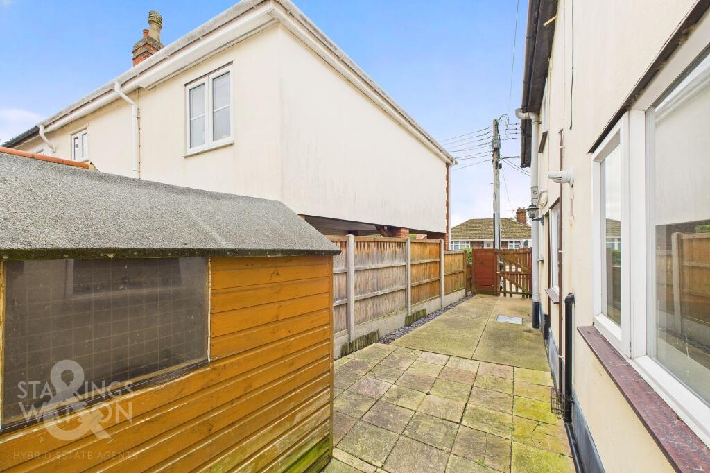This end-of-terrace property on Mission Road, Diss, offers two bedrooms and one bathroom. The house is located in an area with good access to local amenities, including schools and transportation links, such as the Diss railway station. While the property appears functional, it would benefit from modernization, particularly in the kitchen and bathroom. The outdoor space is limited to a small area with a shed. Considering its condition and the local market, the asking price of £175,000 seems reasonable, presenting an opportunity for buyers willing to invest in renovations.
