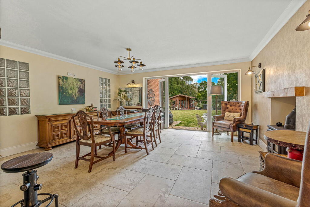 Set back from the main road within a peaceful cul-de-sac, this extended four / five bedroom detached family home offers an exceptional amount of versatile living space, gated parking, a double garage, and an annex.
