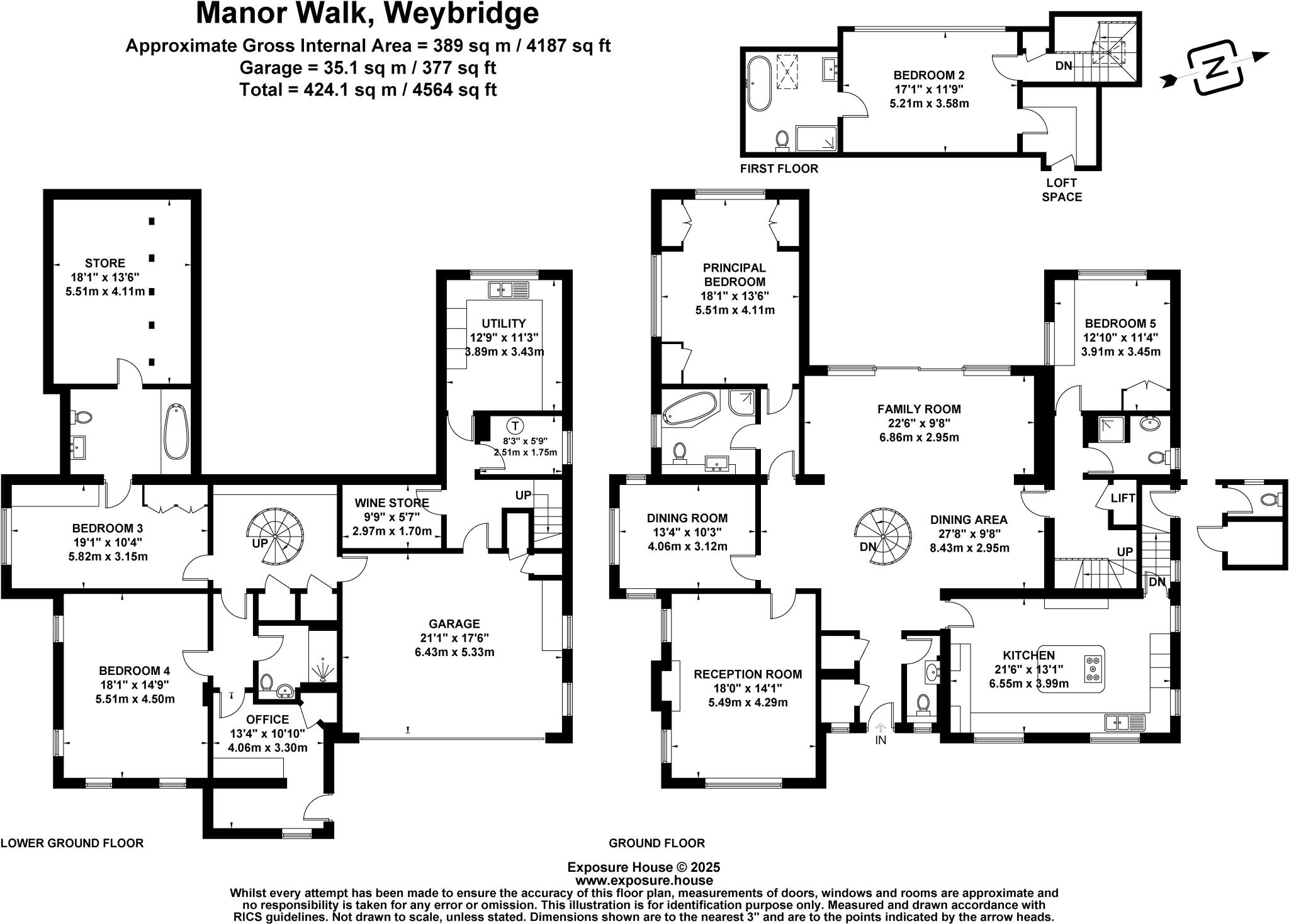Five bedroom home with flexible accommodation in a prestigious Weybridge Park location.