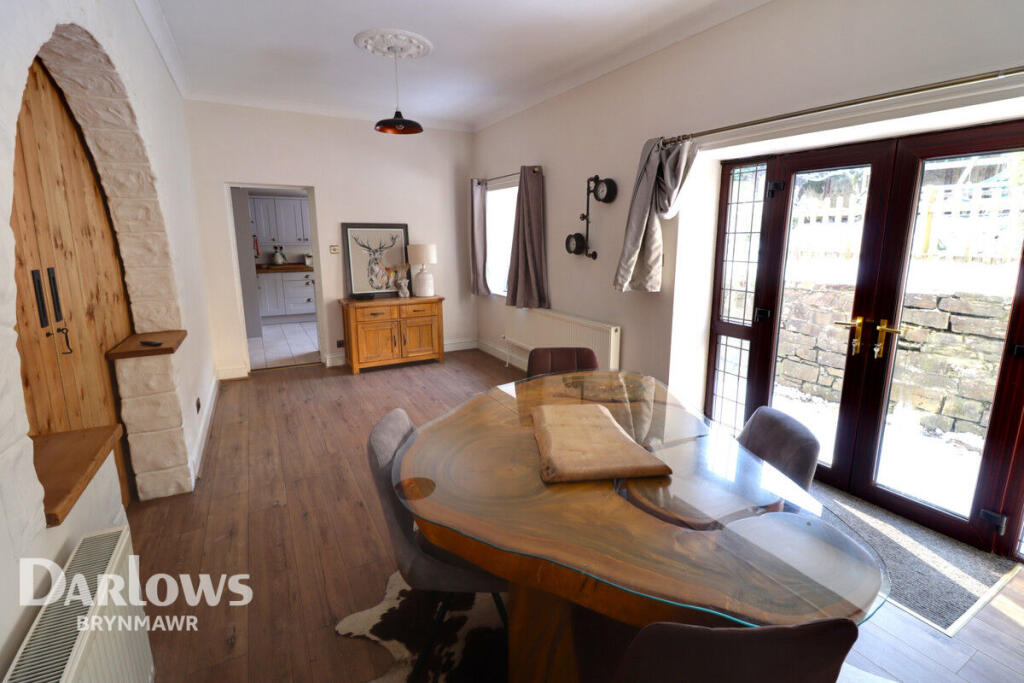 This is a semi-detached property located on Railway Terrace, Nantyglo, Blaenau Gwent. It features 5 bedrooms and 3 bathrooms. The property appears to be in good condition, with modern interior and well-maintained exterior. It also benefits from a large garden with a patio and play area. However, the asking price of £400,000 seems high compared to the average property prices in the immediate area. The property is located close to local schools and transportation links, making it suitable for families and commuters. Overall, it’s a well-presented property with good amenities, but the price may be a point of negotiation.
