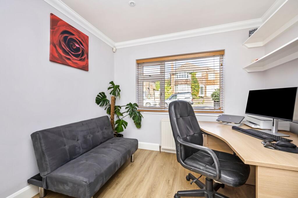 This is a detached property in a sought-after location in Hove Park. The house offers four bedrooms and three bathrooms, making it suitable for families. The property benefits from a garden and off-street parking. While generally well-maintained, some areas could benefit from cosmetic updates. The property includes a detached outbuilding in the garden which could be used as a home office or gym. The property is conveniently located near schools and transportation links.