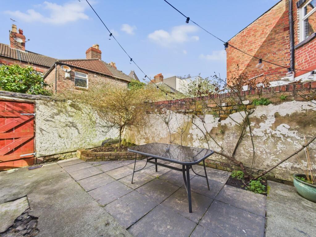 The property has a small, enclosed rear garden, providing some outdoor space. However, the size is limited.