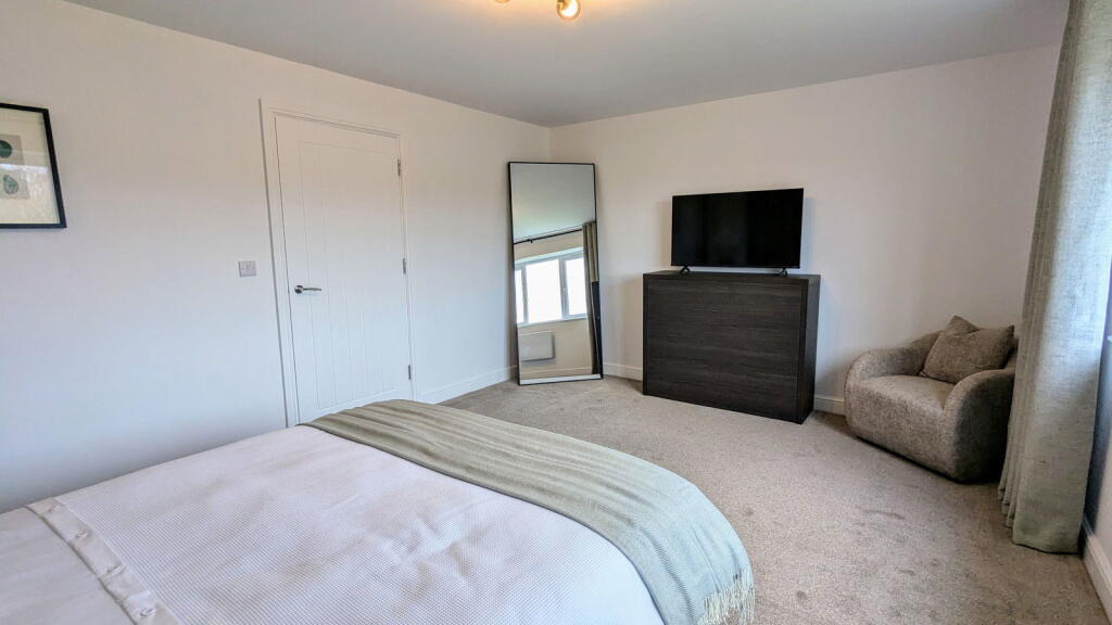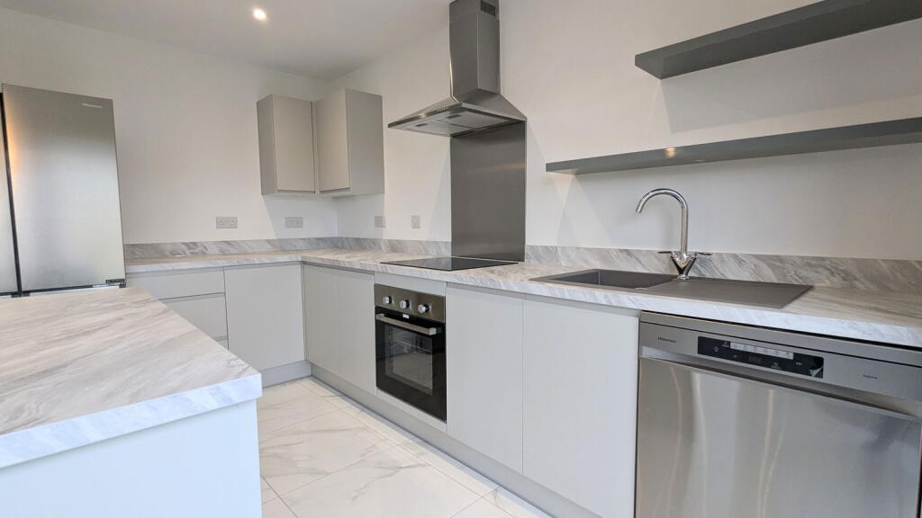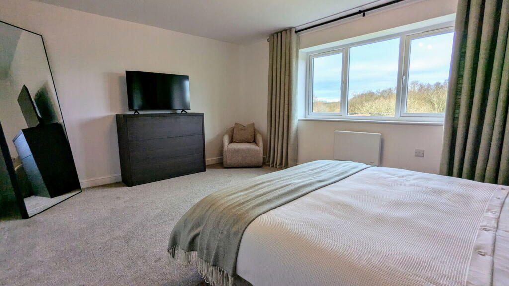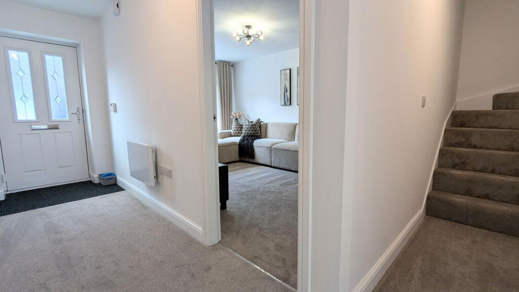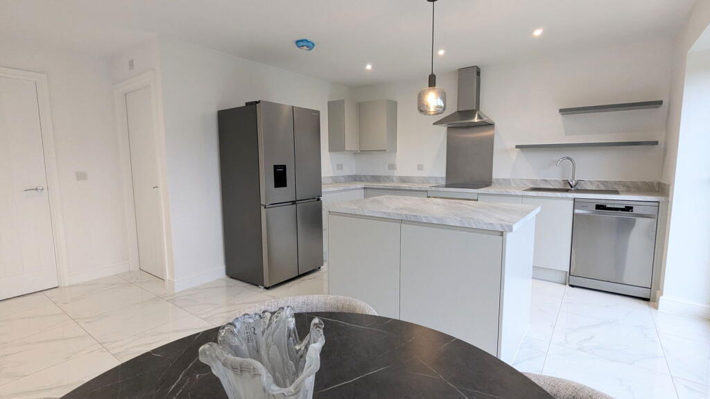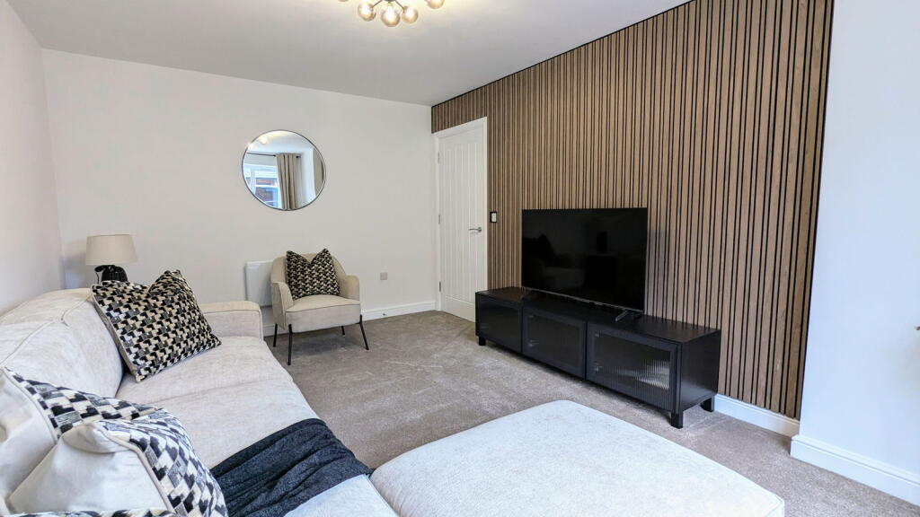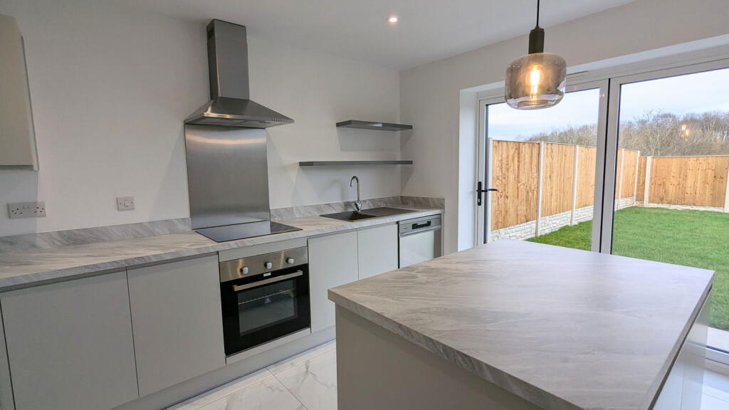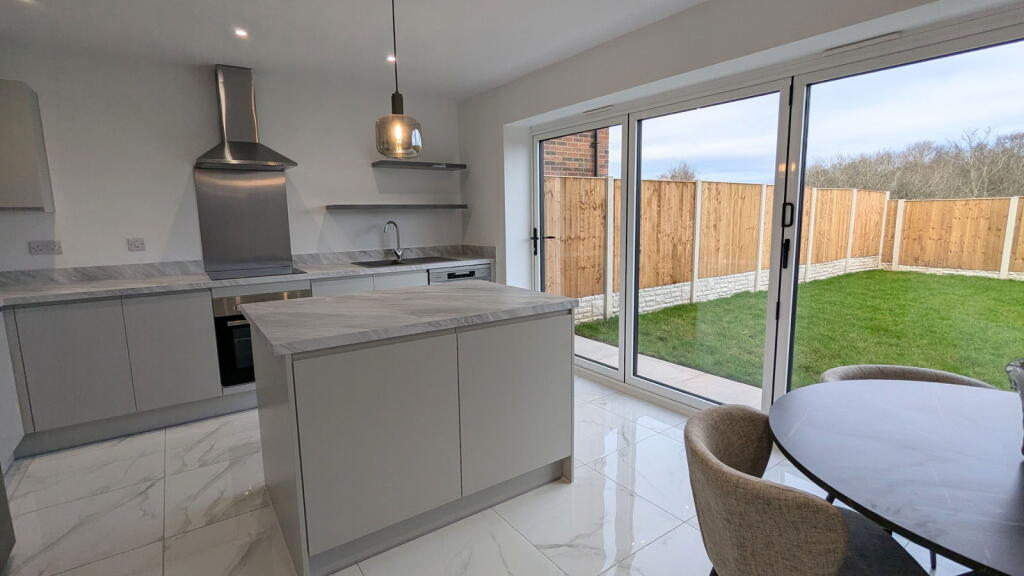 This property, located in Abram, Wigan, presents as a modern, well-maintained, four-bedroom house with three bathrooms. The images showcase a contemporary interior design with high-quality finishes and fixtures. The kitchen is a particular highlight, featuring modern appliances and bi-fold doors leading to the rear garden. The property appears to be newly built or recently renovated, which is reflected in its clean and updated aesthetic. The garden, while not enormous, appears to be well-maintained and provides a private outdoor space. The location offers access to local schools and transportation links, though the proximity to shops and other amenities is not explicitly detailed in the provided information. The asking price of £300,000 is in line with other larger properties in the area, but a precise evaluation is hampered by a lack of square footage data for this property and inconsistent data for comparable properties. Overall, this property is likely to appeal to families seeking a modern, well-appointed home in a relatively convenient location.