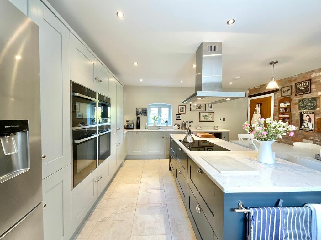 This property is a luxurious Grade II listed barn conversion located in Acton, Cheshire. The conversion appears to be of high quality, with stylish interiors and contemporary design. Key features include four bedrooms, four bathrooms, a bespoke kitchen/diner, double garage, and lush gardens. The property is situated in a desirable village location close to Nantwich, offering scenic views and convenient access to amenities. The average house price in the area is considerably lower than the asking price of this property, however, this is likely due to the unique nature of this Grade II listed barn conversion with its high-quality finish and spacious layout. The property benefits from being close to Acton Church Of England Primary Academy (0.09 KM) and other schools in Nantwich, as well as having good transport links to Nantwich train station (3.71 KM).
