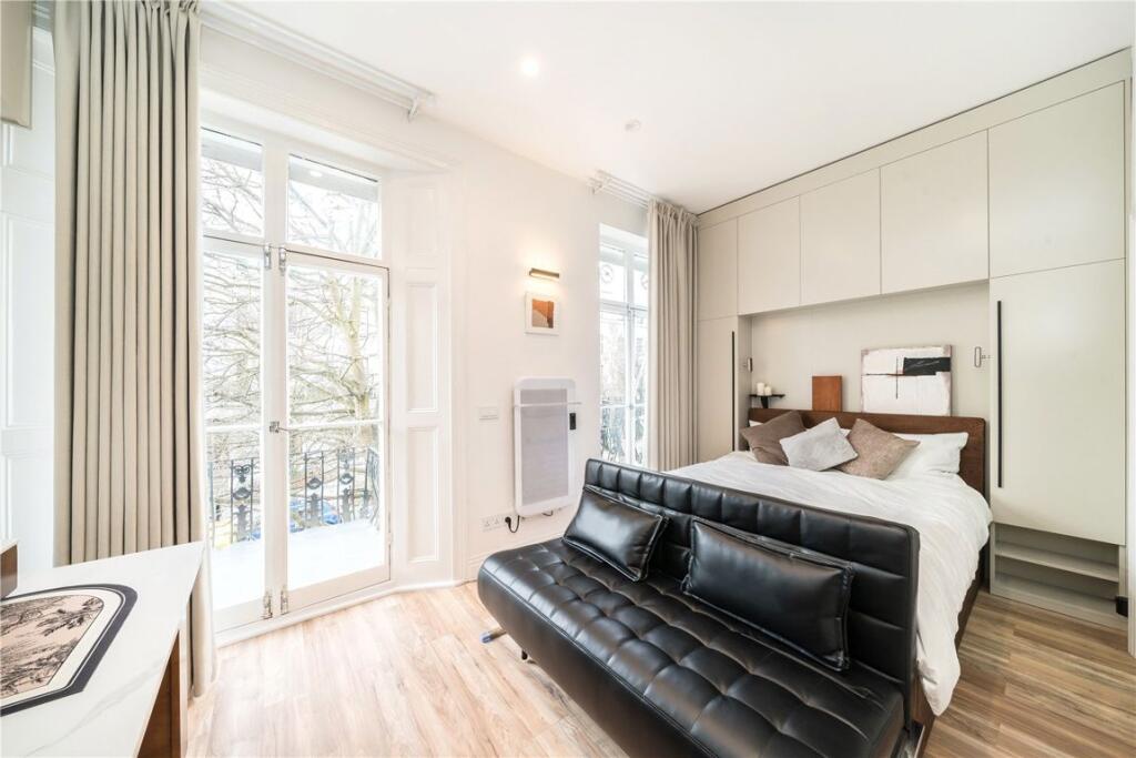 An architecturally designed studio apartment on the first floor within a period building on a prestigious street in Notting Hill.