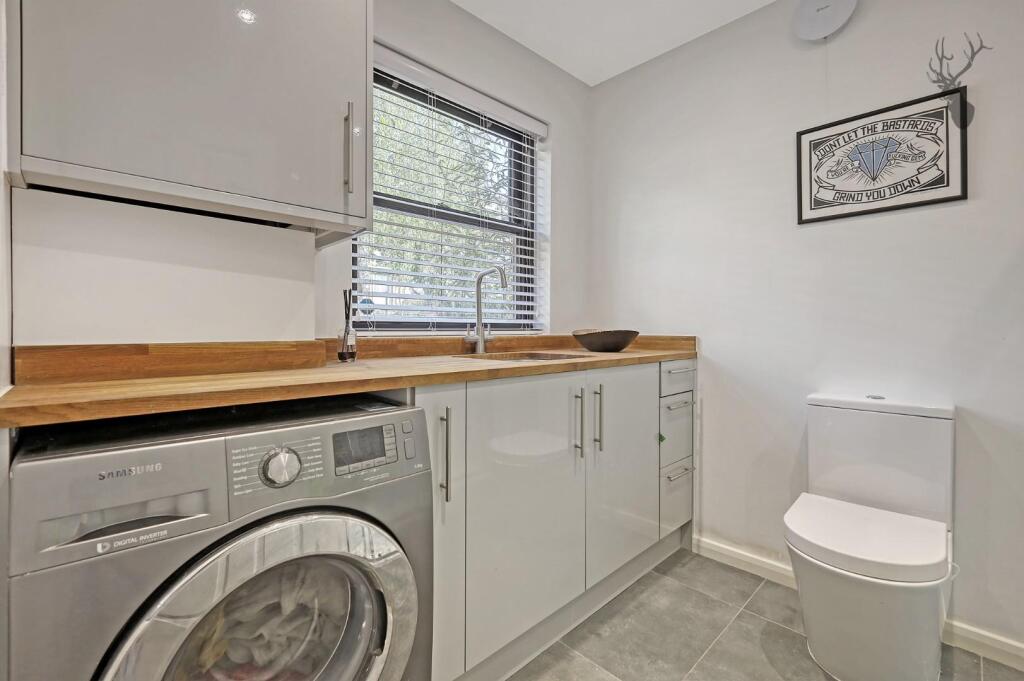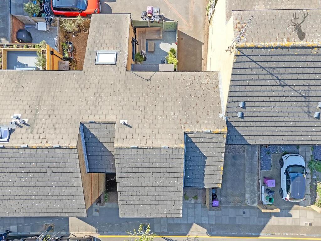 Based on the provided images, the property appears to be in excellent condition. It has been recently renovated or built to a high standard, with a modern kitchen, bathroom, and interior design. There is no visible evidence of wear and tear or the need for repairs. The property includes a well-maintained rear garden, adding to its appeal.
