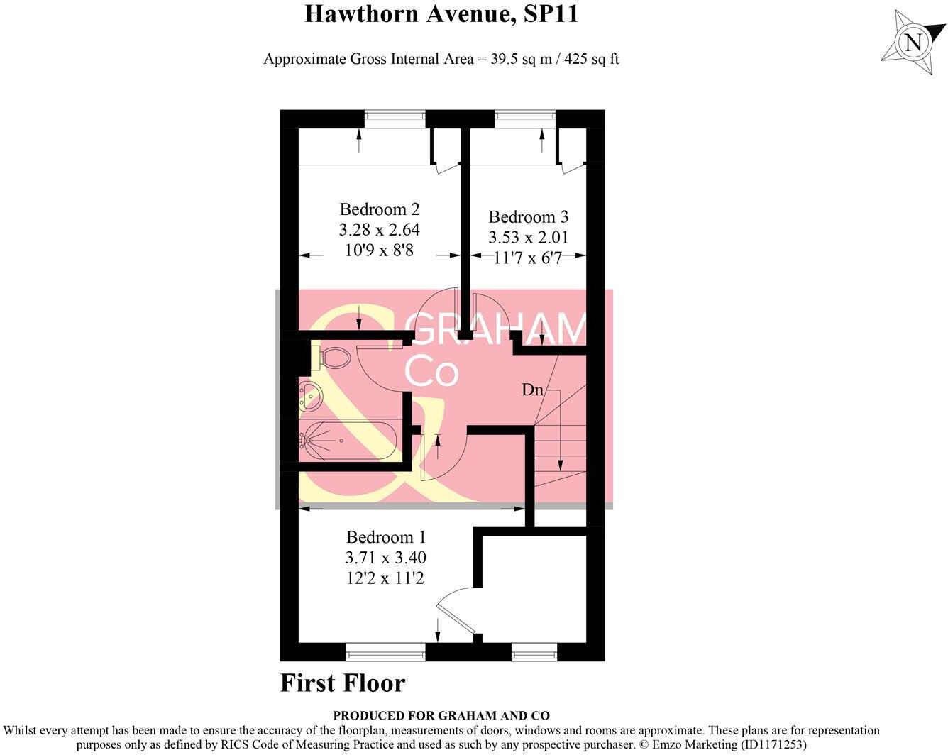 The property is a 3-bedroom, 1-bathroom house with a total area of 853.58 sqft and is listed at £350,000. The property benefits from a garden, as shown in the provided images. The average price for properties in the area is £333,800, with an average size of 1,144 sqft and an average price per sqft of £291. This suggests that the subject property is smaller than average for the area. The property appears to be in good condition based on the images provided. The interior is well-maintained and presented, suggesting that it is move-in ready and would not require significant renovations. The kitchen and bathrooms look modern and clean. The location is in Andover Romans, Andover, Hampshire. The proximity to schools like Endeavour Primary School (0.34km) and Roman Way Primary School (1.07km), both rated \‘Good\’ by Ofsted, is a positive aspect for families. The nearby Andover train station (3.48km) provides convenient access to transportation links. The area appears to be a relatively new development based on the descriptions of nearby properties. Considering the property’s good condition, the presence of a garden, and its location near amenities and schools, the list price of £350,000 appears to be at the higher end of the market value for the area, given its smaller size compared to the average property in the area. The nearby comparable properties suggest a range of prices, with some properties exceeding the list price and others below. The final price will depend on factors not captured in this analysis, such as the specifics of the property’s features and the current market conditions.
