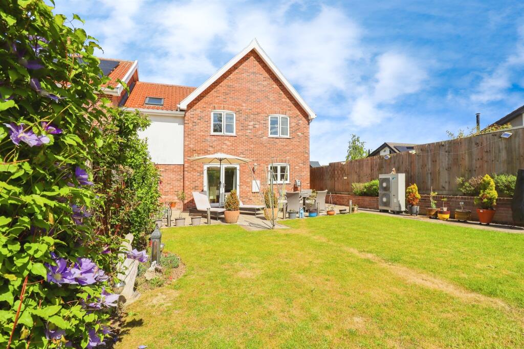 An immaculately presented 3-bedroom linked detached home in the desirable village of Stradbroke, featuring a large contemporary kitchen/ diner, underfloor heating, and primary bedroom with en-suite. The property also offers also offers an enclosed rear garden, driveway, and a garage,