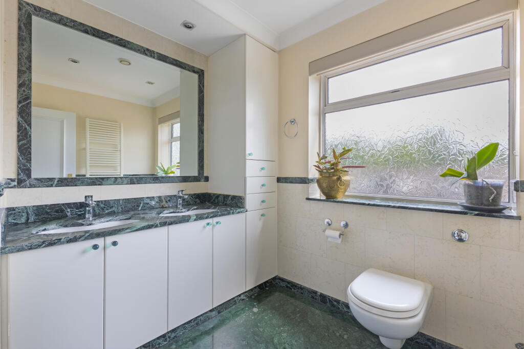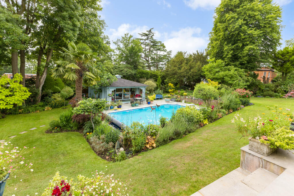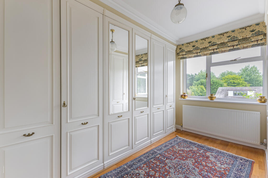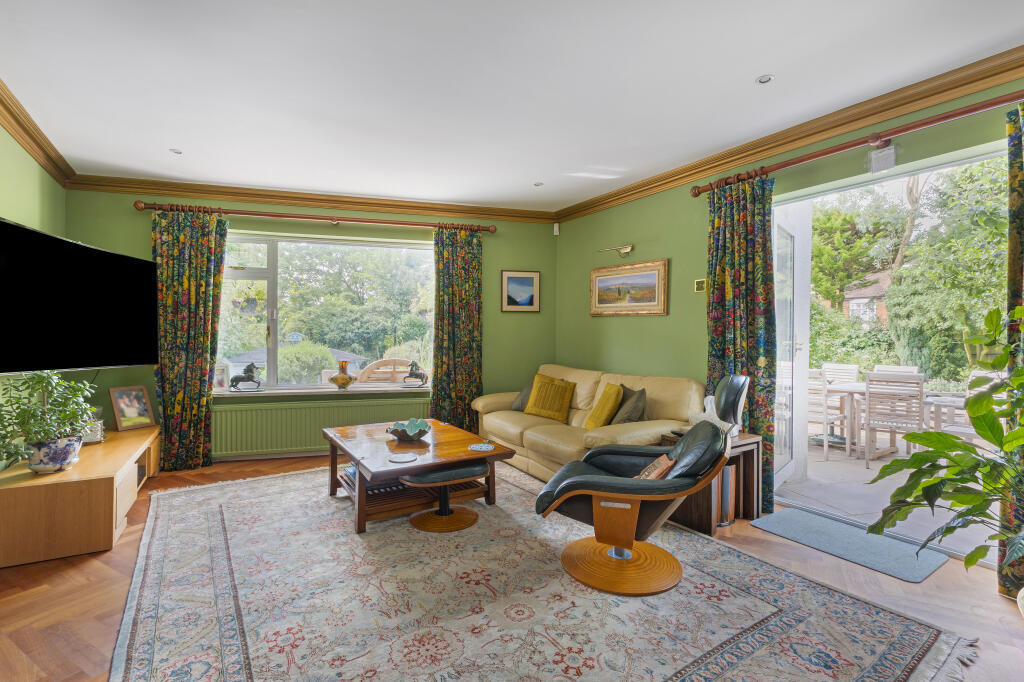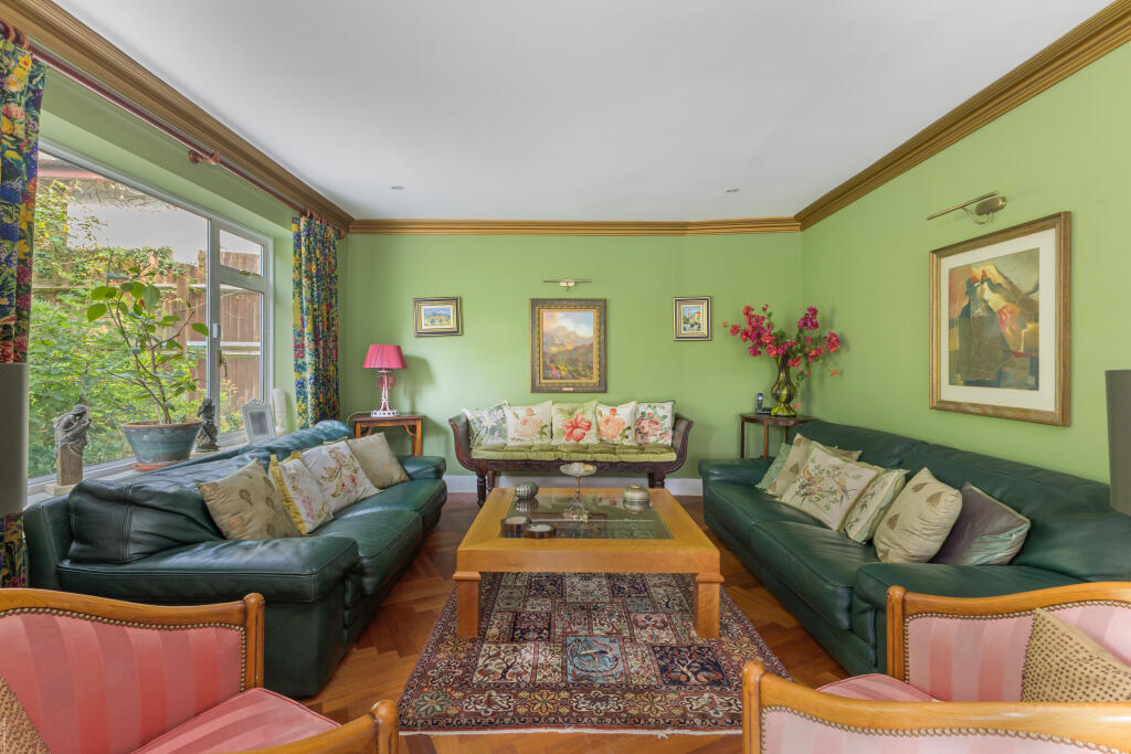 A double fronted detached home on a plot approaching half an acre, situated discretely in the corner of this sought after cul-de-sac off Stanmore Hill.