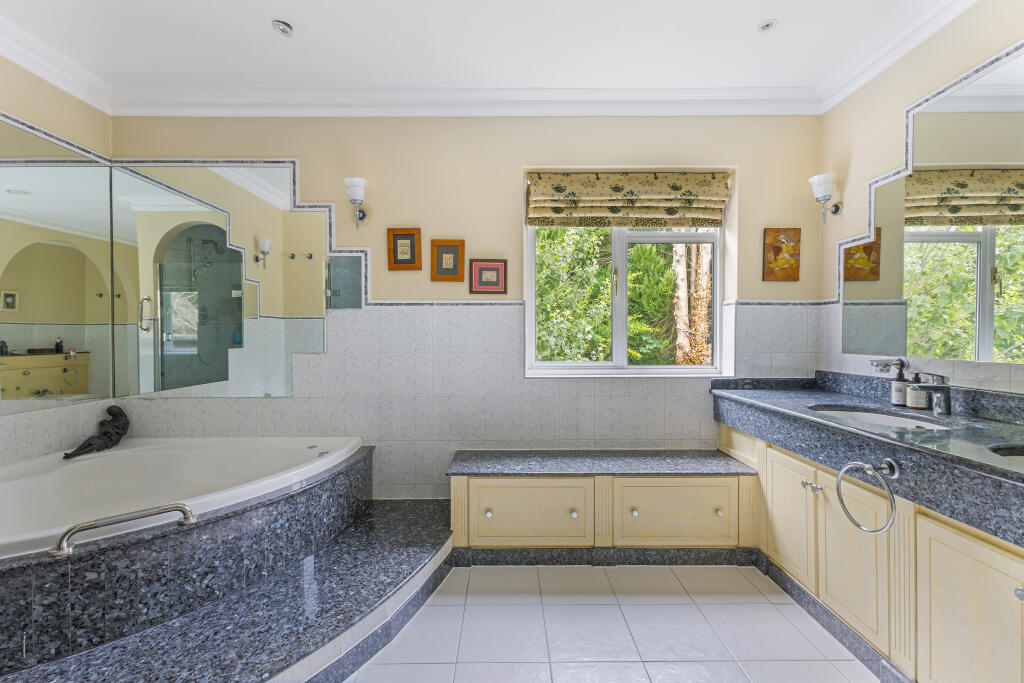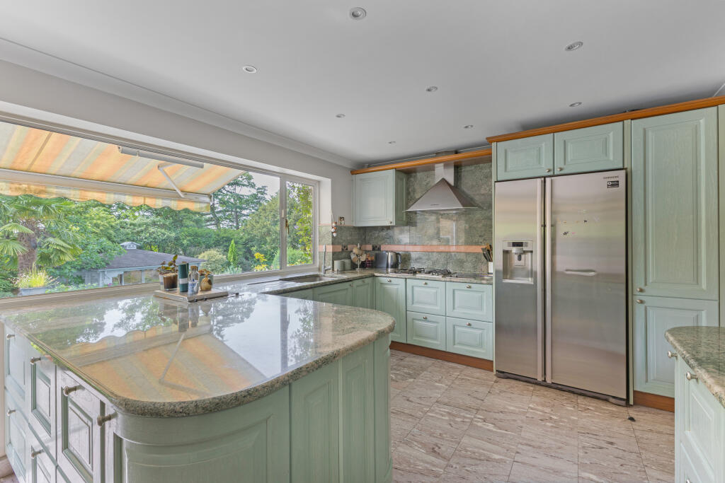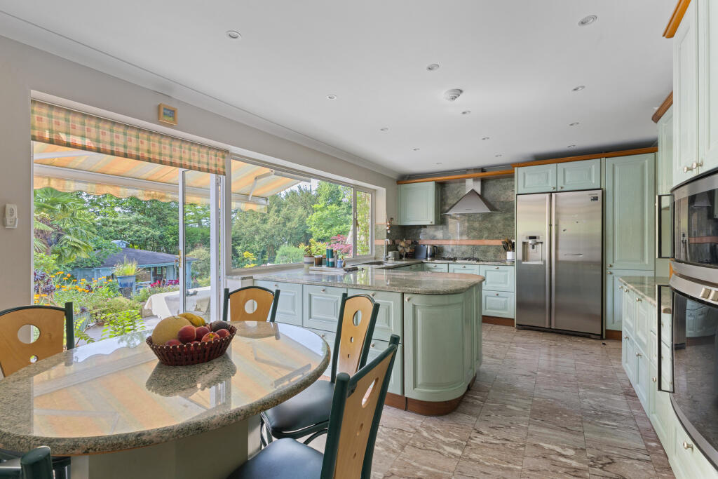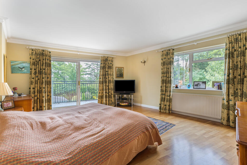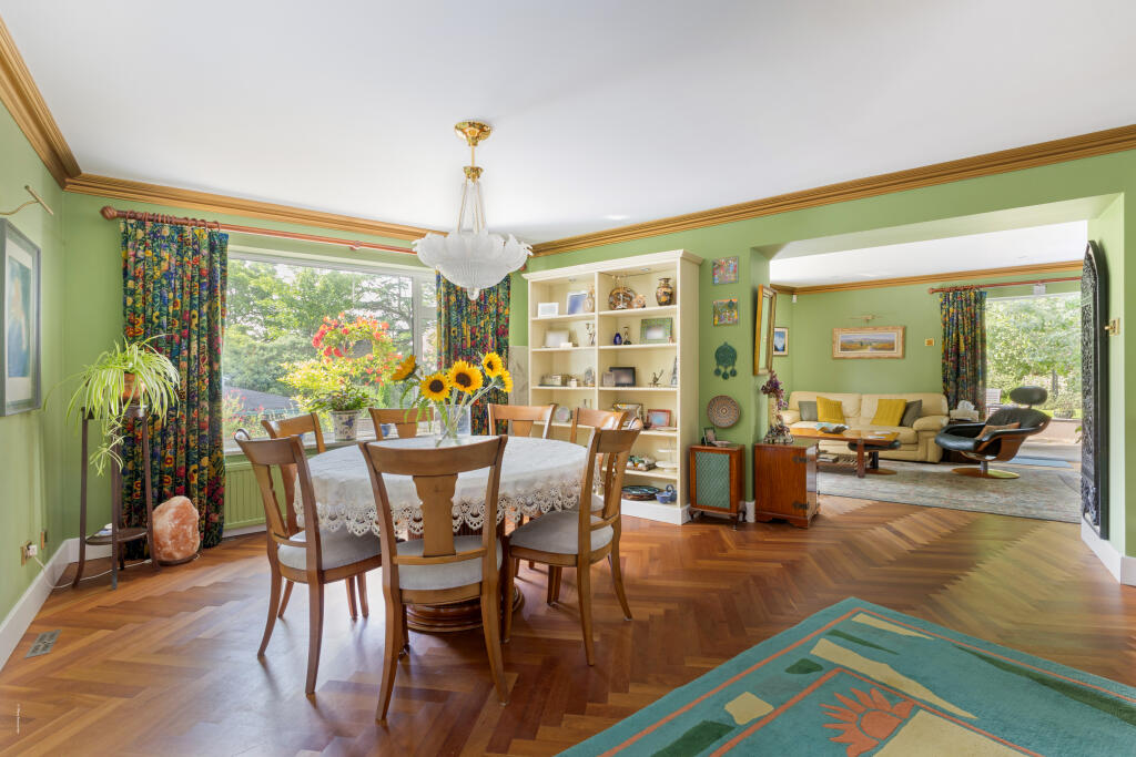 A double fronted detached home on a plot approaching half an acre, situated discretely in the corner of this sought after cul-de-sac off Stanmore Hill.