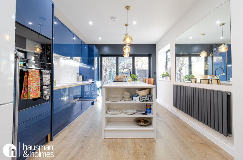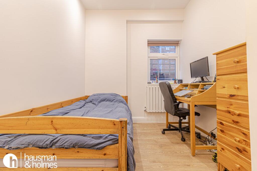 This beautifully refurbished three-bedroom, two-bathroom ground floor apartment is set on a quiet, tree-lined street just a 3-minute walk from Golders Green Tube Station (Northern Line).