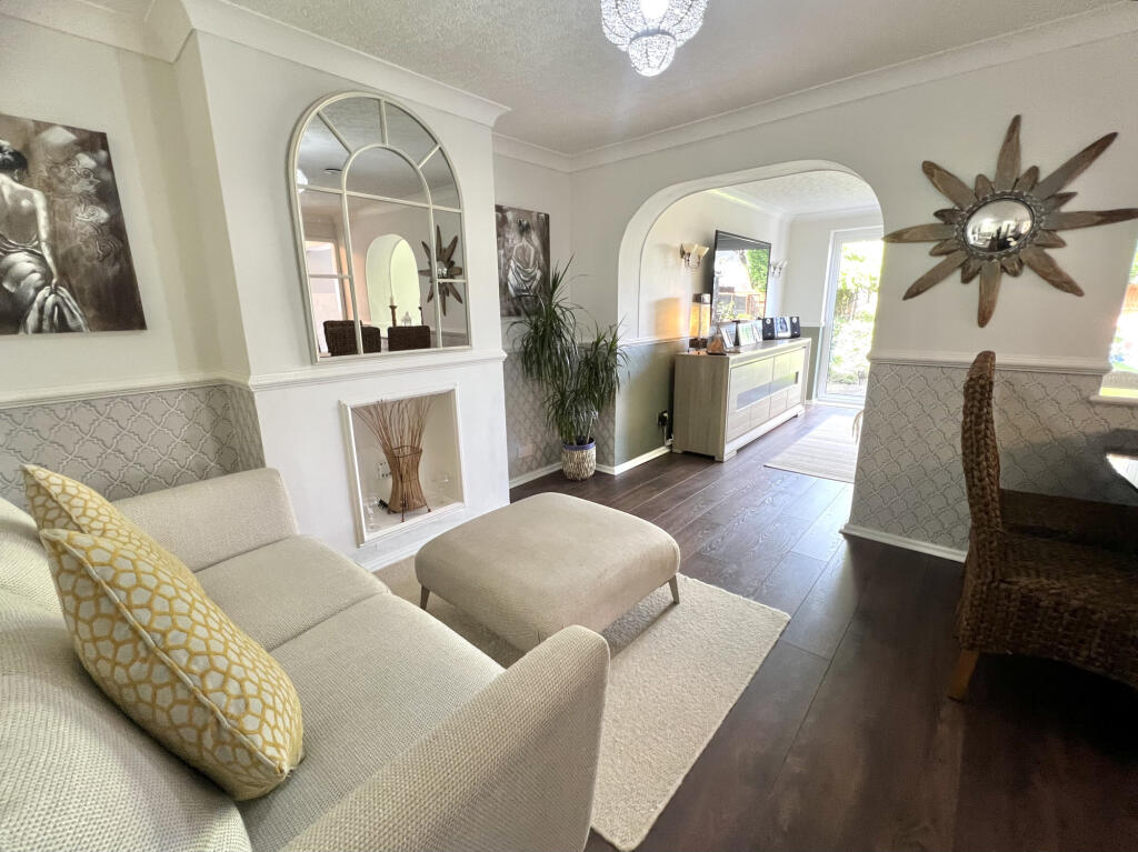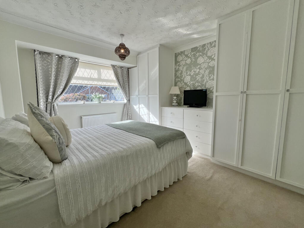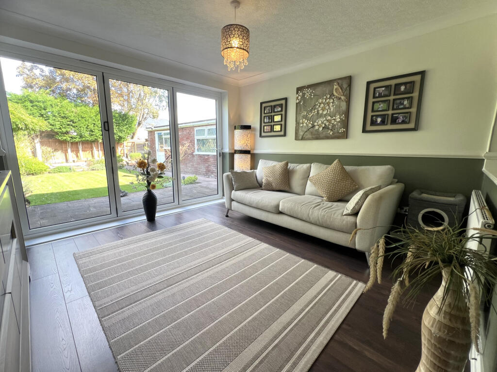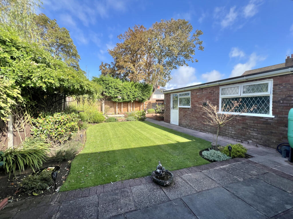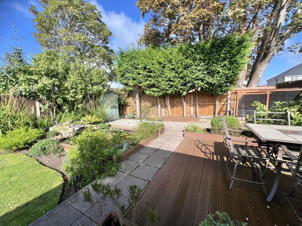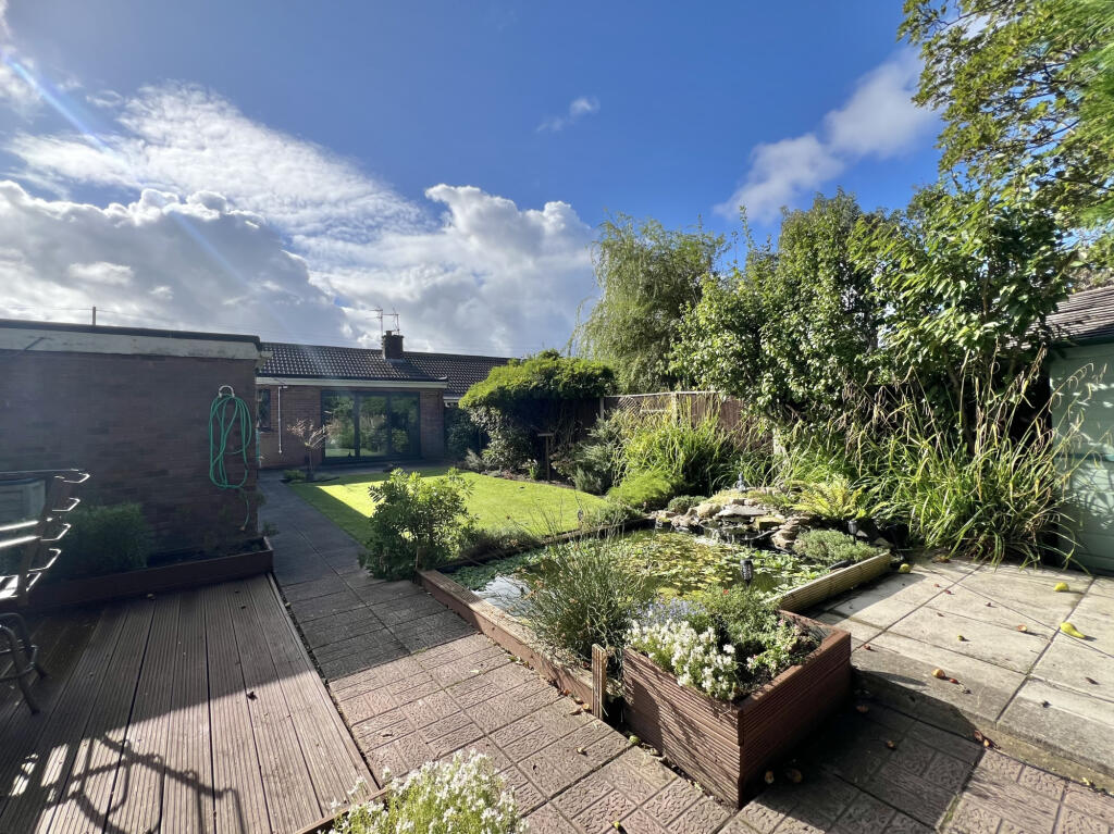 This two-bedroom bungalow on Bennett Road in Thornton presents a well-maintained living space with a large garden. The interior features modern decor and what appears to be a recently renovated bathroom. The property’s location offers convenient access to local schools and amenities in the Marsh Mill area. The standout feature is the substantial and beautifully landscaped garden, complete with a lawn, patio, decking, and a pond, providing an attractive outdoor space. While the list price is slightly above the average price per square foot for the area, the property’s overall condition and generous plot size contribute to its appeal. This property would be ideally suited to a small family or retired couple.