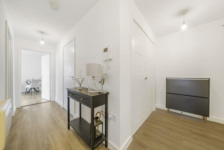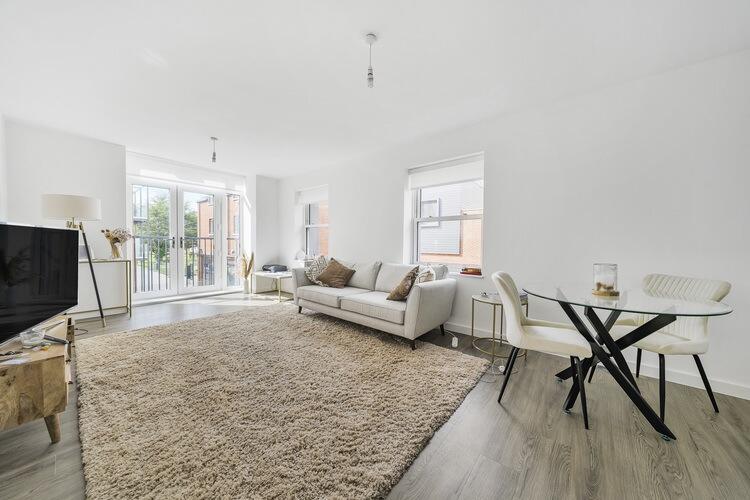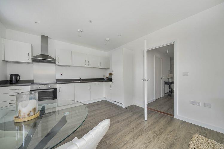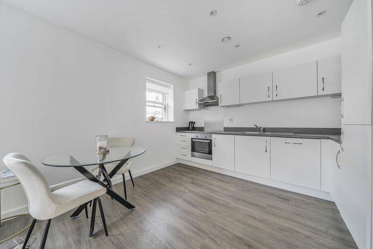 This two-bedroom flat in Woodlock Court, Farnham, offers modern, contemporary living in a convenient town centre location. The property boasts an open-plan kitchen/living area, a bathroom, and two well-proportioned bedrooms, one of which is presented as a home office. The internal condition is clearly excellent, with new or modern fixtures, fittings and a neutral style throughout. The photos suggest a bright and airy property with ample natural light. The location in Farnham town centre is a significant benefit, providing easy access to the railway station, schools, shops, and other amenities. While the property itself lacks outdoor space and the lack of comparable sales data prevents a precise valuation, the list price appears to represent reasonable value for money in this market.