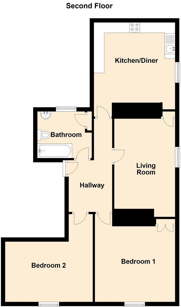 VIEWING RECOMMENDED. This TWO BEDROOM second-floor apartment is CENTRALLY LOCATED close to the centre of Buxton, offering easy access to transport links and shops. Internally, the property comprises: entrance hallway, living room, dining kitchen, two double bedrooms, and newly fitted modern bath...