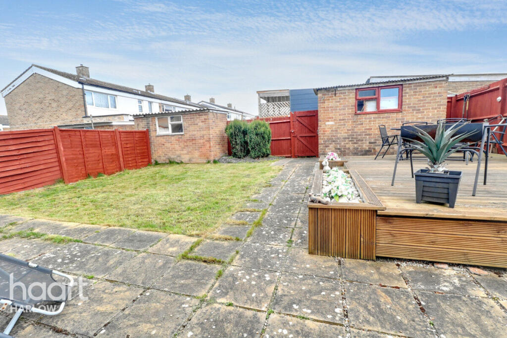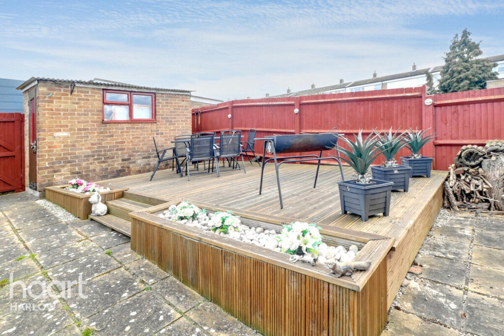 This maisonette is located in Radburn Close, Harlow, Essex. The property is a three-bedroom maisonette with one bathroom. It benefits from a good-sized garden with a decked area and a shed. The interior is presented in good condition and appears to have been recently modernised. The property is within easy reach of several primary and secondary schools which are rated as good by Ofsted. Transport links are also good, with several train stations within a reasonable distance. However, the plot size is not specified, and the average price per sqft in the area is higher than that of the property in question.