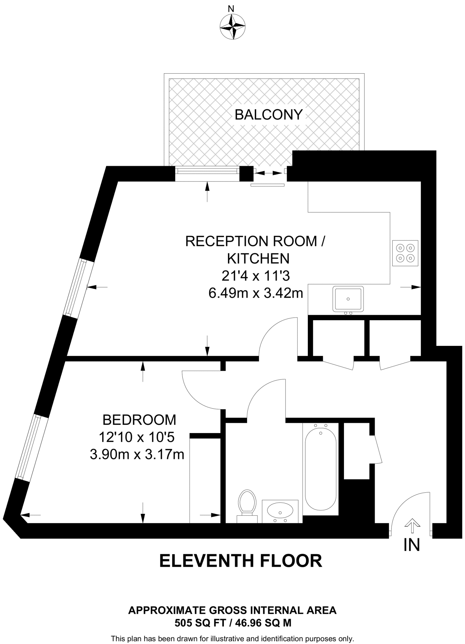Arranged on the 11th floor, this exceptional 1 bedroom apartment offers a bight open plan kitchen/reception room with private balcony, a generous bedroom, chic bathroom and plenty of storage throughout.