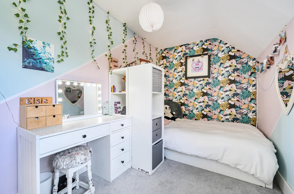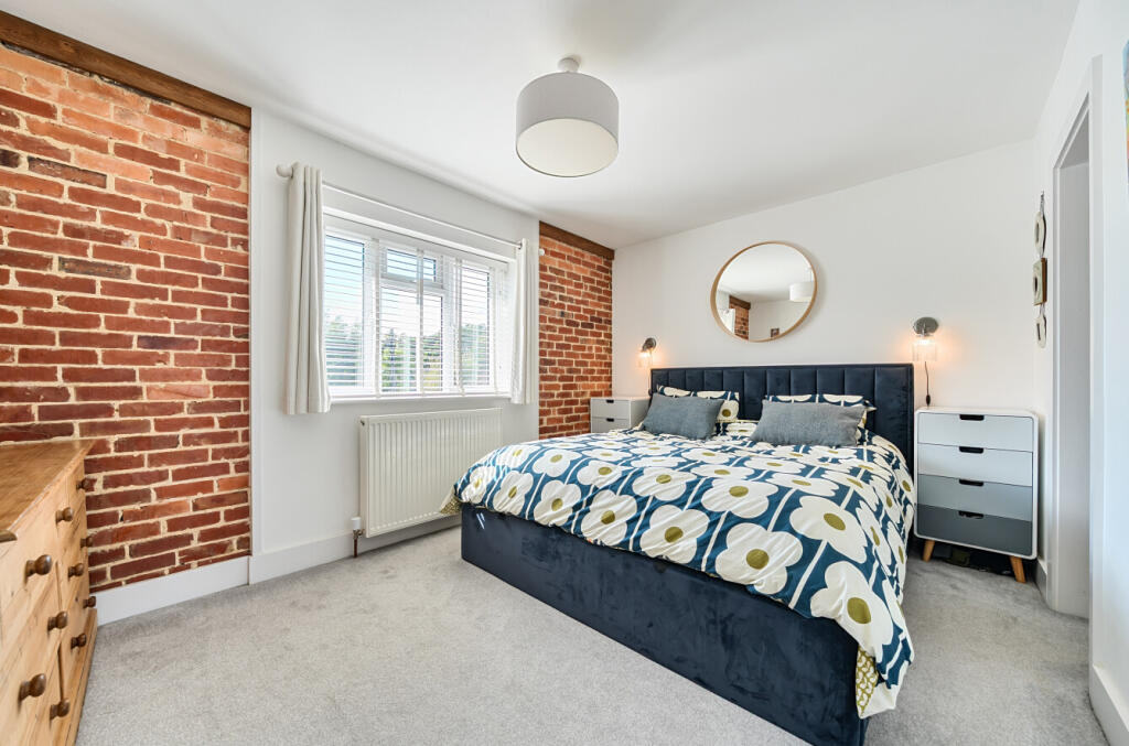 This is a four-bedroom semi-detached house in Bartley, Hampshire. The property benefits from a modern interior, a well-maintained garden, and proximity to local amenities such as schools and transportation. The property includes two bathrooms and offers 1,582 square feet of living space. The house is located in a desirable area within the New Forest District.