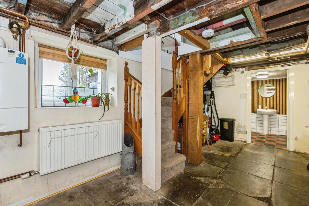 Based on the provided images, the property is in generally good condition, although some areas, such as the basement, show signs of needing attention. The kitchen appears to have been recently modernised. The property shows traditional features, such as the fireplace and the wooden flooring. The garden is well-maintained and offers a pleasant outdoor space.