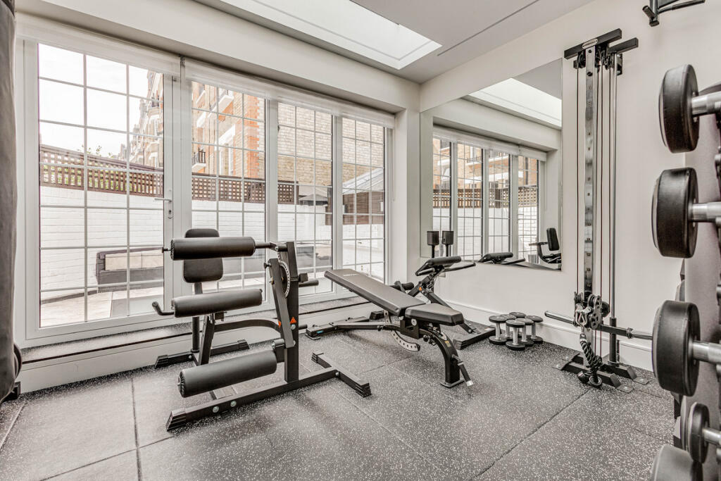 This terraced property is located in the sought-after area of Kensington and Chelsea. It features four bedrooms and four bathrooms. The property appears to be in excellent condition, with modern fixtures and fittings throughout. The property benefits from a small outdoor terrace and a gym. The property is located close to local amenities, shops, and transportation links. Nearby schools include Marlborough Primary School, Knightsbridge School, and Saint Thomas More Language College.