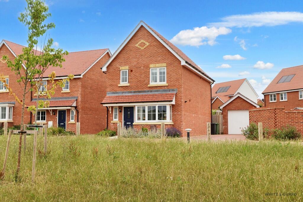 Showcasing delightful views across open fields and countryside, this modern three bedroom detached home has a garage and driveway, alongside a generous size rear garden. The well-proportioned accommodation includes a kitchen dining room, downstairs WC and living room set across the rear of the ho...