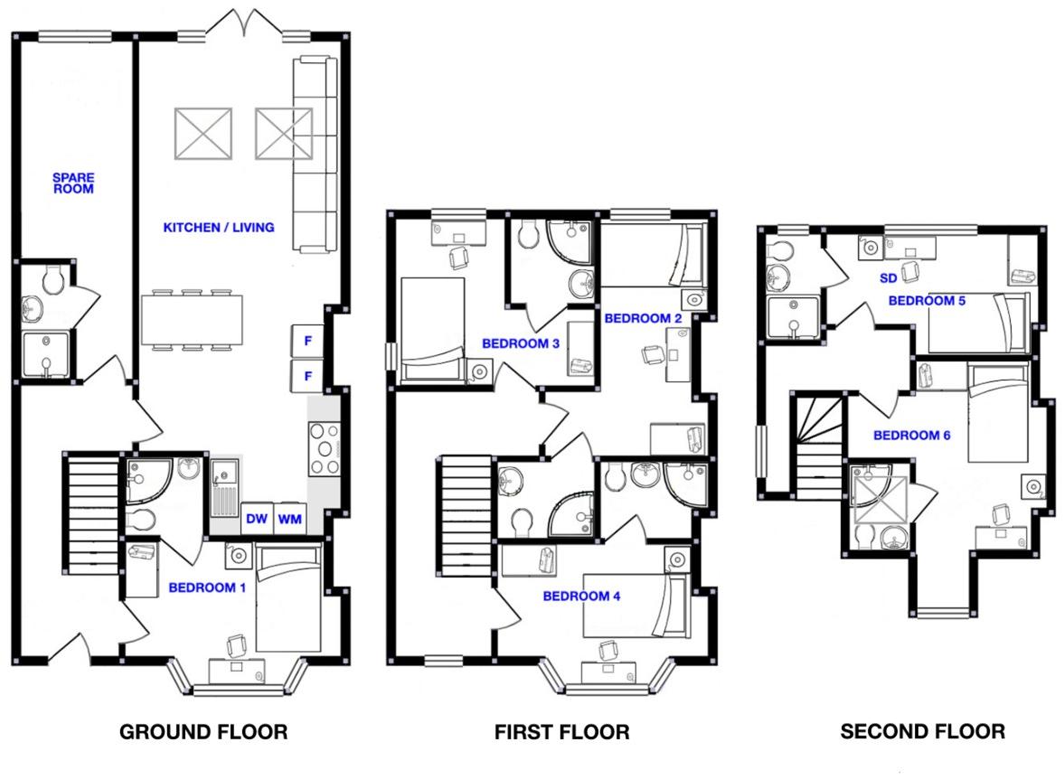 Fully furnished 6-bed ALL EN-SUITE student house with spacious open plan kitchen and communal area. £135pppw BILLS INC AND HIGH SPEED INTERNET from September 2024. Call us today to arrange a viewing!