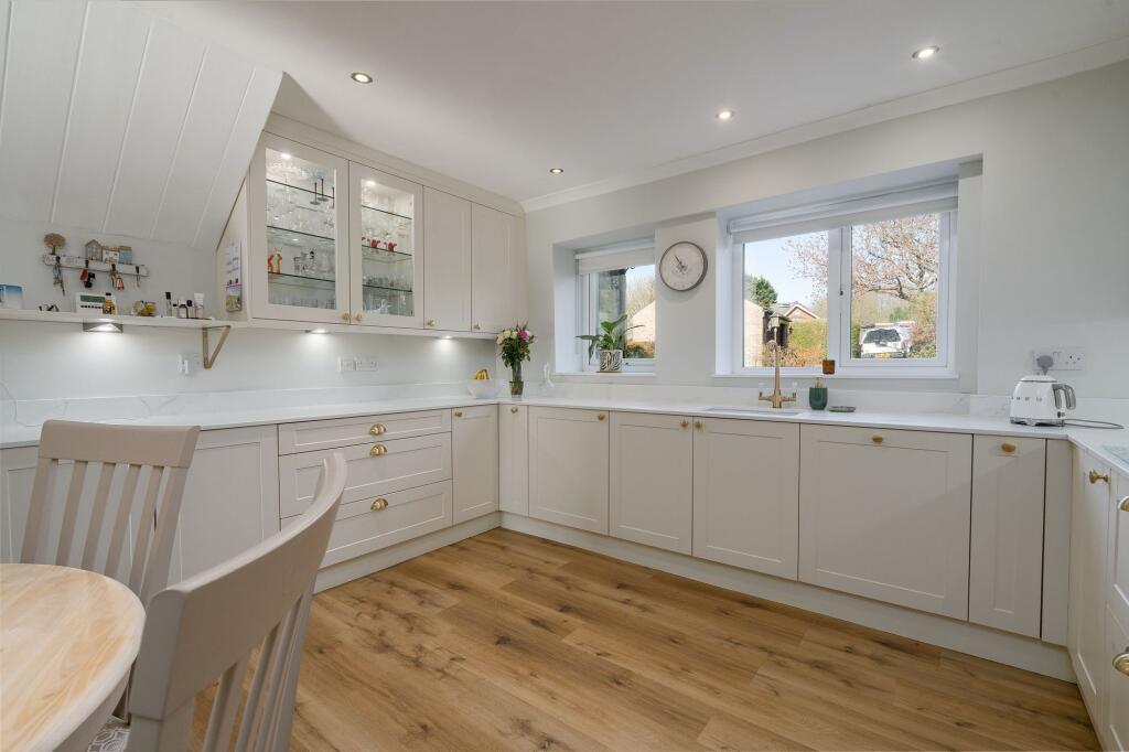 4-bed detached property with 3 receptions, 4 bathrooms, and double garage. Stunning stone fireplaces. Picturesque gardens with ample parking and outdoor entertainment spaces. Ideal for refined living.