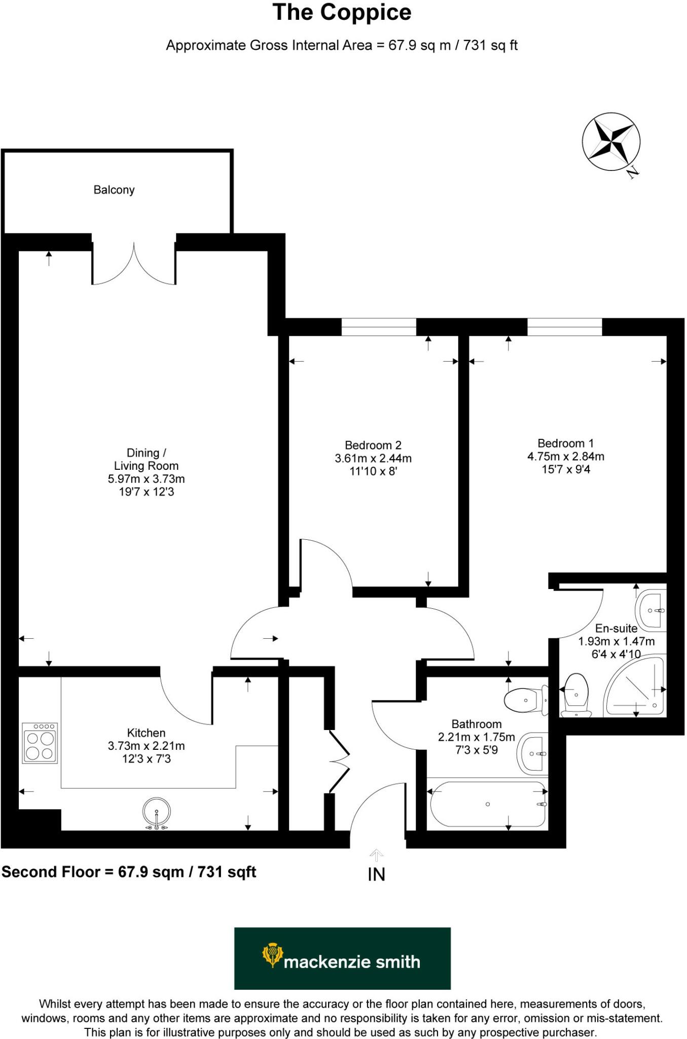 ** NO ONWARD CHAIN ** Two bedroom, Two bath top floor apartment in a prime location. Boasting a balcony, communal gardens, and off-street parking. With 743 sq ft of living space, this property offers a perfect blend of comfort and convenience. Ideal for professionals or small families.