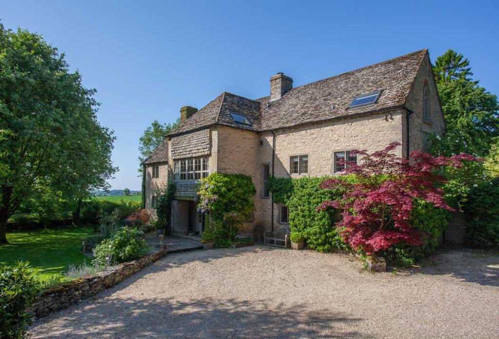 A beautifully presented and conveniently located Cotswold stone country home, created from a historic barn, with separate cottage and mature grounds. The property is accessed off a no through lane. The drive curves across open lawn to the front of the impressive former barn with parking to the s...