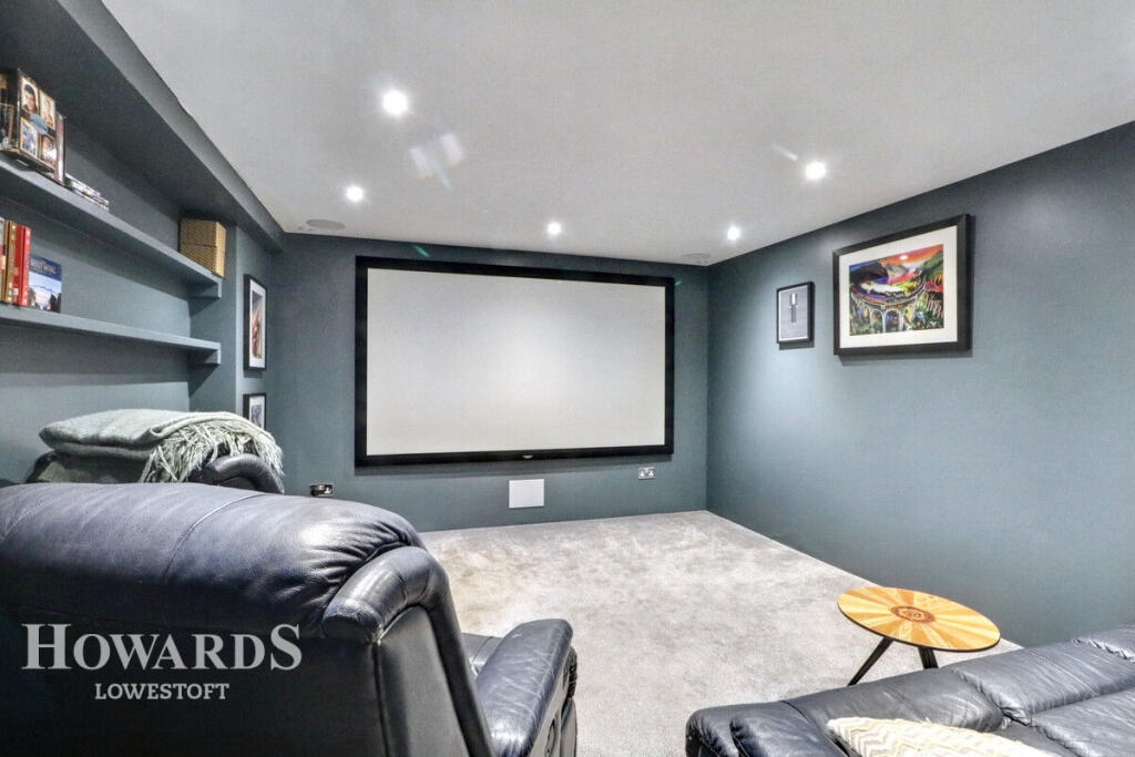 The property is a detached house situated in the Kirkley & Pakefield area of Lowestoft, Suffolk. The location benefits from relatively close proximity to several primary and secondary schools, with Pakefield Primary School being the closest at 0.79km. Train stations are also within a reasonable distance, with Lowestoft station being 2.80km away. This suggests a convenient location for families and commuters. However, without specific details on the quality of local amenities and the immediate surrounding environment, a definitive assessment of location quality is difficult. The images reveal a property that appears to be in excellent condition. It has undergone significant renovations or extensions, featuring a modern kitchen and other updated interior spaces. The property’s exterior is well-maintained, suggesting a lack of immediate repair needs. The overall impression is of a high-quality, well-presented home. The property includes a substantial garden, which is a significant feature adding to its desirability. The garden is well-maintained, and the images show various landscaping elements, including a pond, suggesting a considerable amount of outdoor space. The list price of £950,000 is significantly higher than the average house price in the area (£221,160). However, the average price per square foot (£244) is not useful without the square footage of the property. The lack of square footage information prevents a definitive conclusion on the property’s value for money. A comparison with nearby properties is also limited by the absence of square footage data for those listings. While some nearby properties are listed at higher prices, the lack of comparable size data makes it impossible to accurately assess the list price’s reasonableness. The property has several features including a cinema room, a conservatory, and a swimming pool.