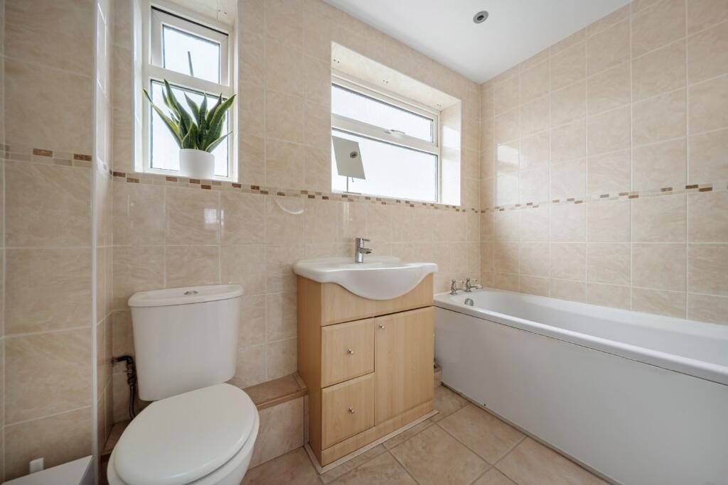 This is a three-bedroom terraced house located in Kingsnorth Close, Hoo, Rochester. The property appears to be in good condition, featuring a modern kitchen and bathroom. It includes front and back gardens, providing outdoor space. The location offers proximity to local schools and transportation, making it suitable for families and commuters. The asking price of £290,000 is competitive for the area, considering the property’s size and condition.