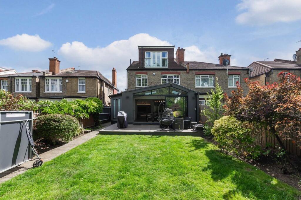 This is a semi-detached house in Finchley, London, featuring 6 bedrooms and 3 bathrooms. The property appears to be in good condition, with a modern kitchen and a well-maintained garden. The location is favorable, with proximity to highly-rated schools. The price is relatively high compared to the average for the area, but this may be justified by the size and features of the property. The property benefits from a garage and a patio area.
