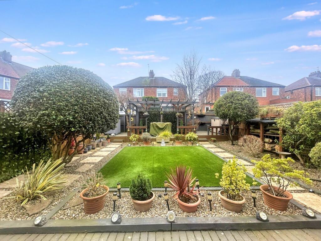 This three-bedroom semi-detached house is located on Westfield Avenue in Monkseaton, Whitley Bay. The property benefits from a modern kitchen and bathroom, and appears well-maintained throughout. The house has a good-sized garden with a pergola and artificial lawn. There is also off-street parking. The location is close to several well-regarded schools, including Langley First School (Outstanding Ofsted rating) and Valley Gardens Middle School (Outstanding Ofsted rating). While precise square footage is unavailable, comparable properties in the area sell for an average of £302 per square foot. The list price of £395,000 should be considered in relation to these comparables and the overall condition and features of this property.