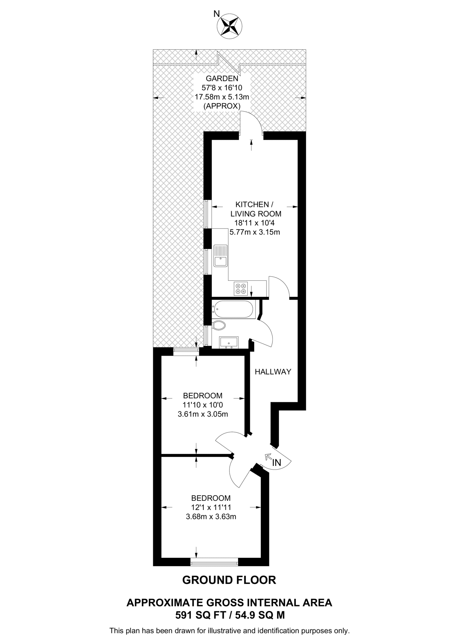 Traditional 2 bedroom ground floor flat offering bright interiors, double bedrooms, family bathroom and open plan reception room/kitchen leading to a lovely back garden.