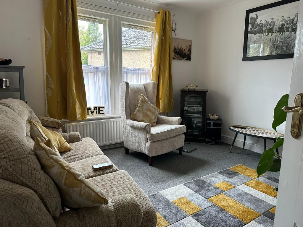 Two bedroom first floor flat with garden and parking.