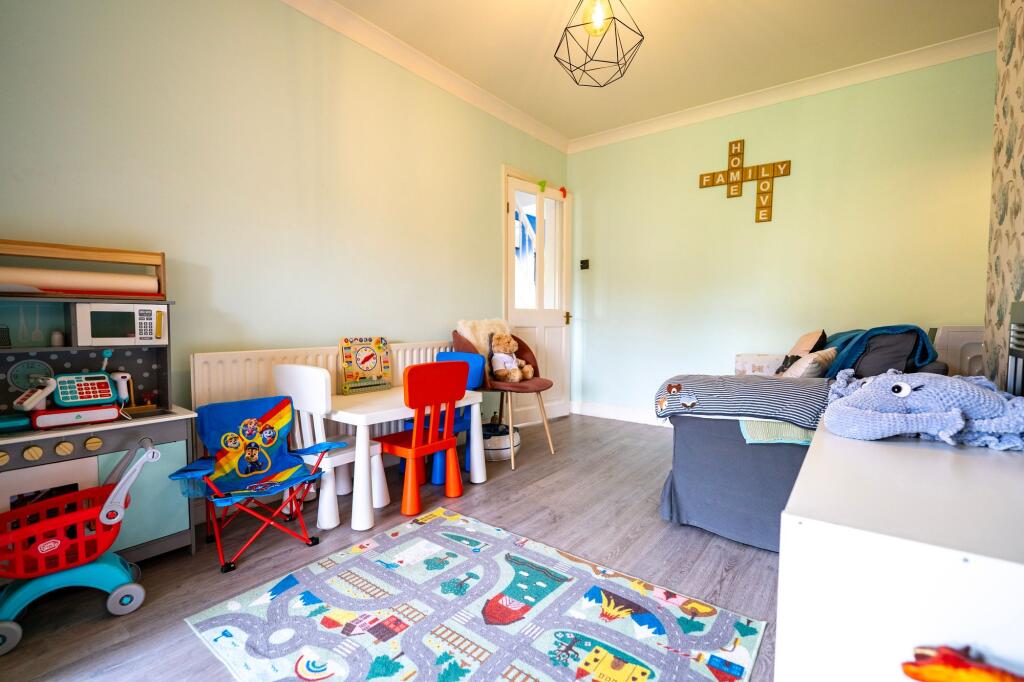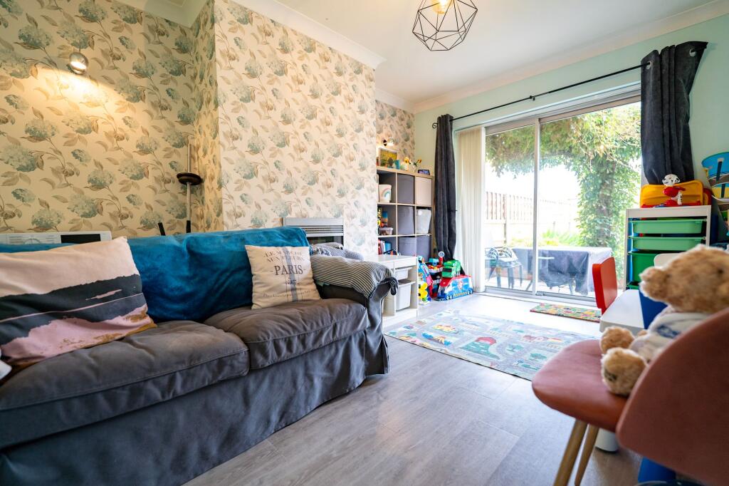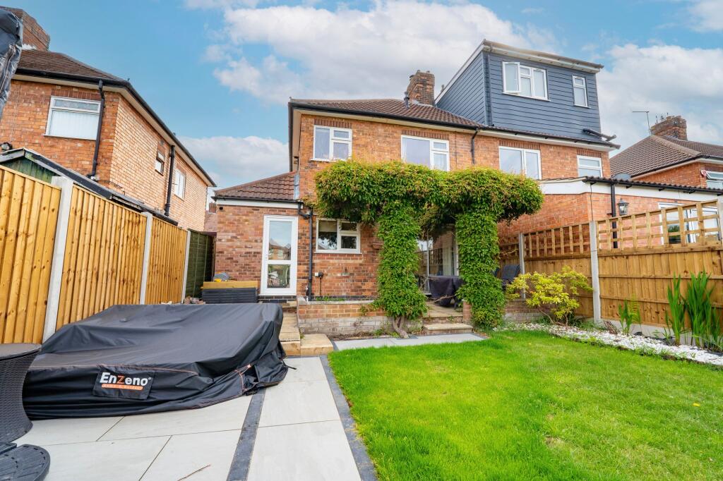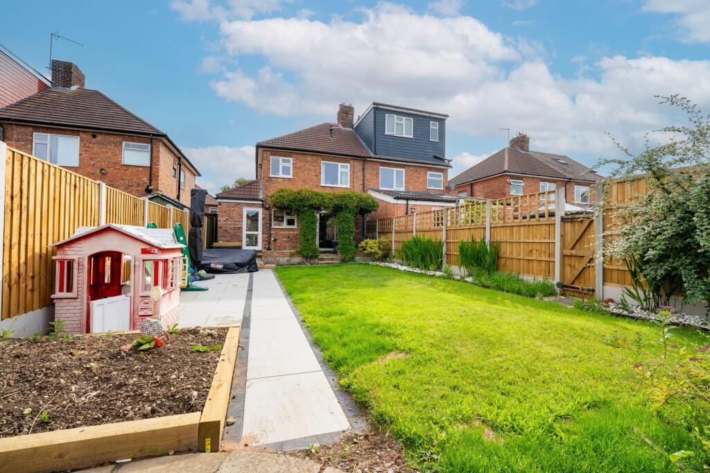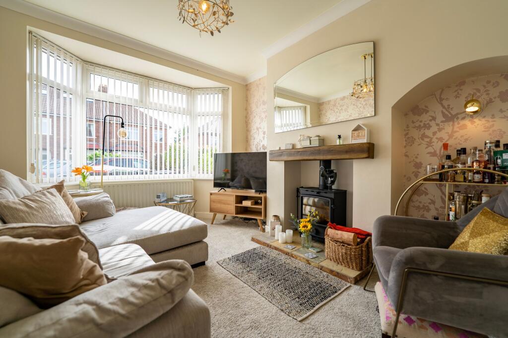 Extended 3-bed semi-detached house in sought-after location. GCH/DG, log burner, large kitchen, 2 reception rooms. Front drive, patio, garden with shed. Near amenities, schools, transport links.