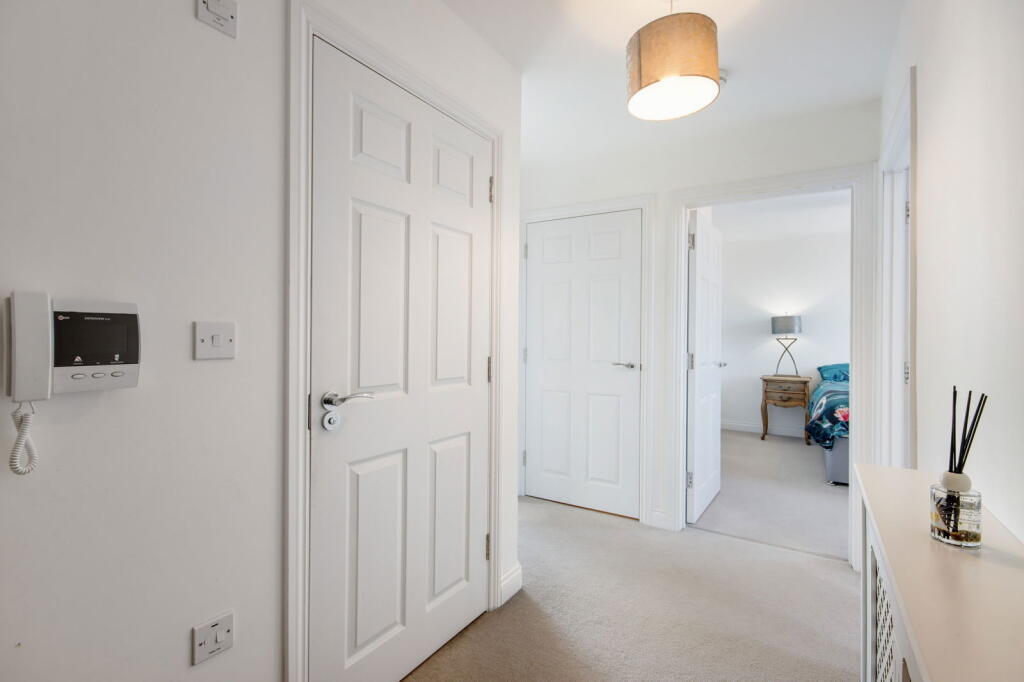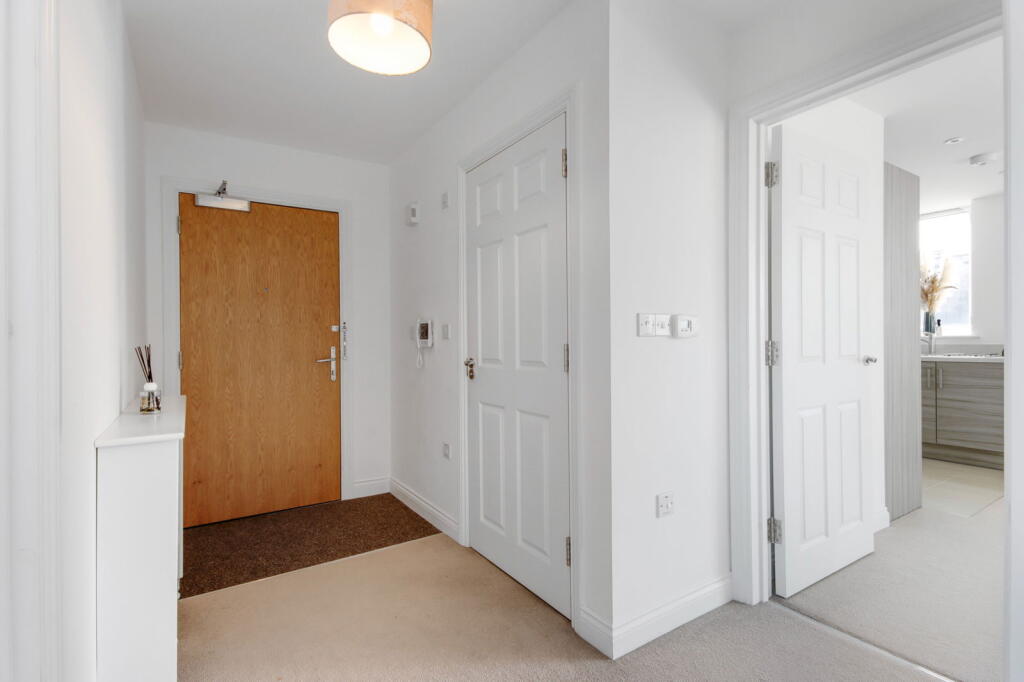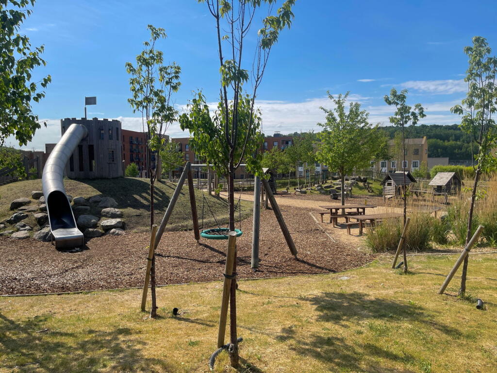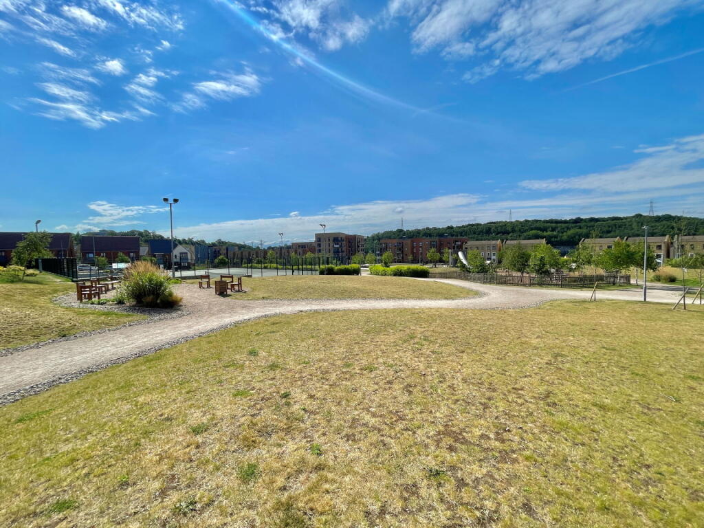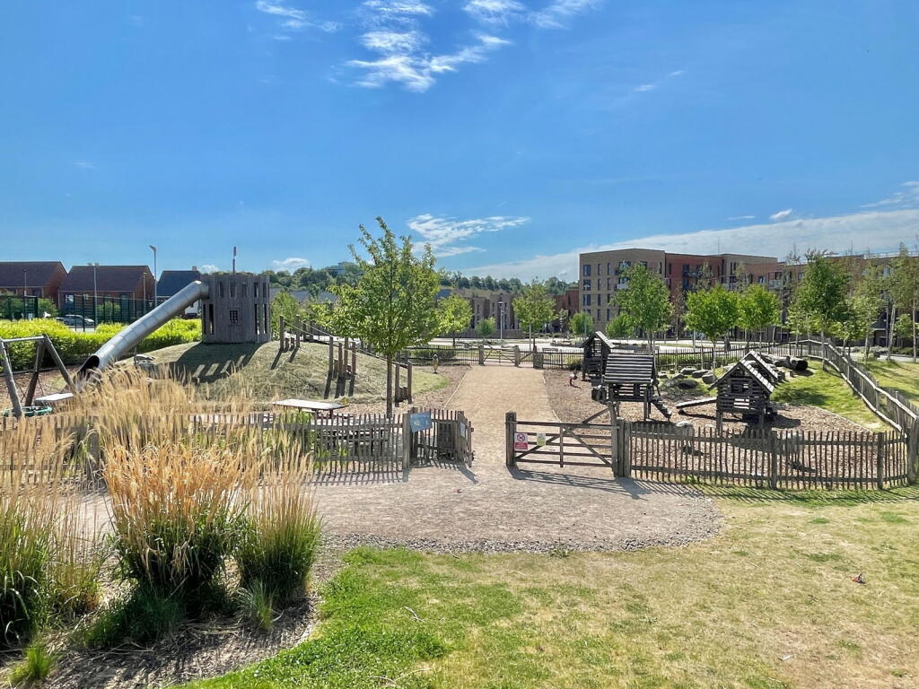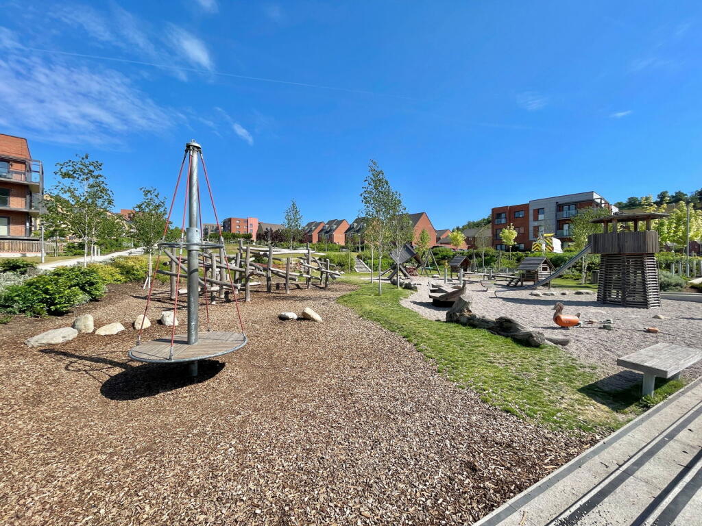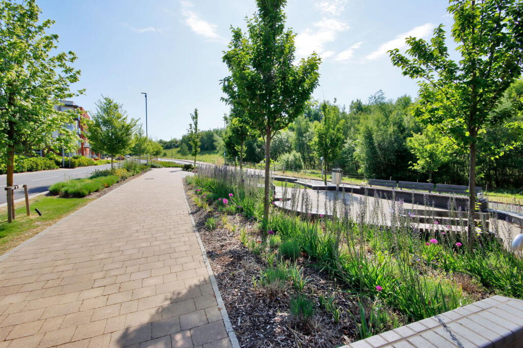 Land: The property is an apartment and therefore does not include a private garden. However, the development appears to have communal green spaces, which are visible in the photographs.