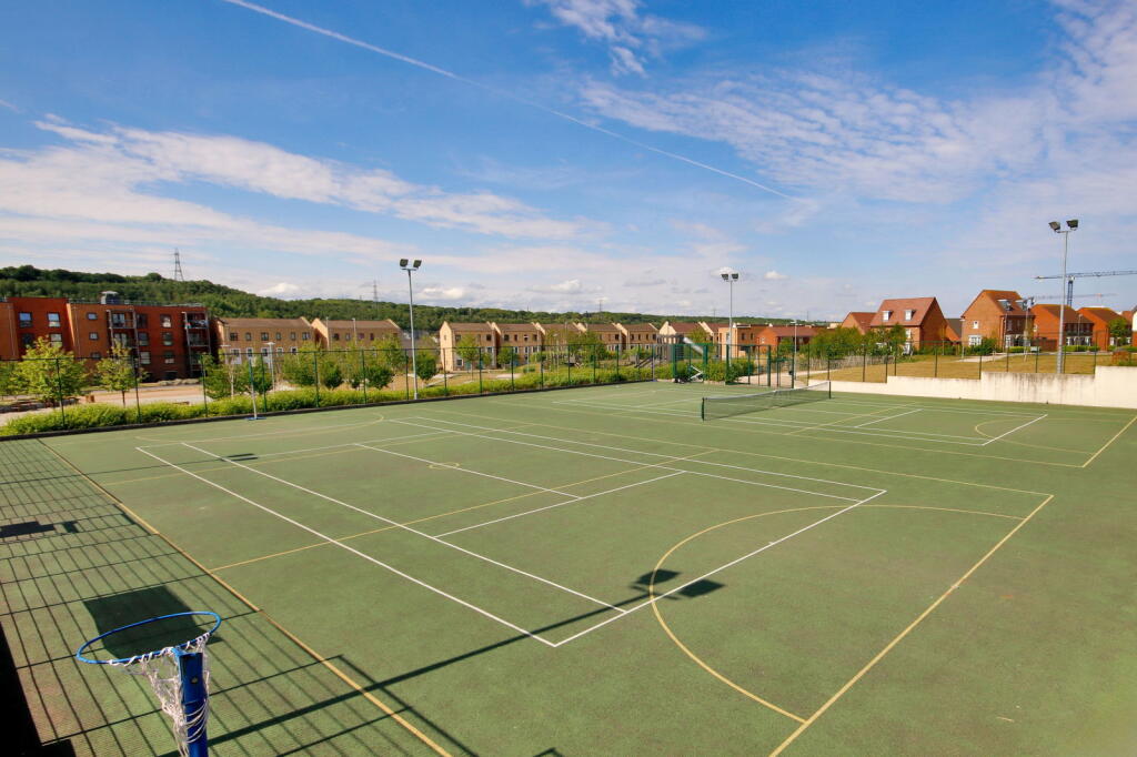 Location: The property is situated in Ebbsfleet Valley, Swanscombe, which benefits from excellent transport links. Ebbsfleet International station is within a short distance, providing high-speed rail connections to London and beyond. Additionally, there are several bus routes serving the area, and the proximity to the A2 and M25 motorways ensures easy access to other parts of Kent and the wider South East region. The presence of several well-regarded schools nearby, including The Ebbsfleet Academy and Manor Community Primary School, both rated ‘Good’ by Ofsted, adds to the appeal of the location for families. The local amenities appear to be developing, with the presence of a community centre and a coffee shop visible in the provided images.