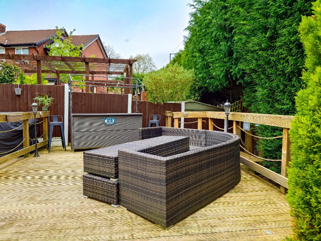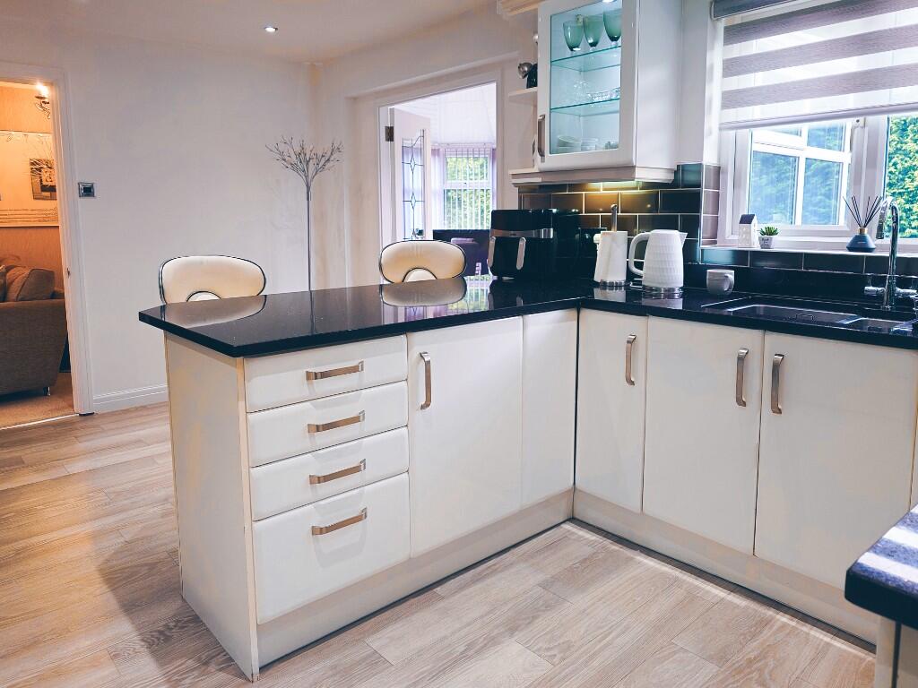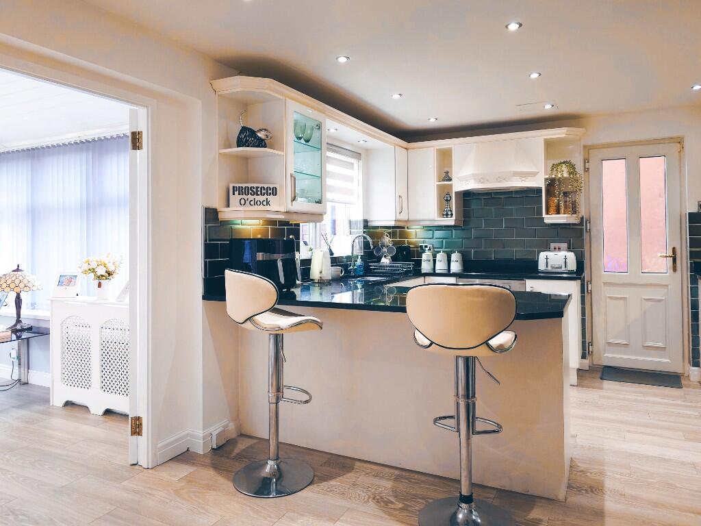 The property is a four-bedroom detached house located in Dukinfield, Cheshire. It benefits from being within a reasonable distance of several primary and secondary schools, all rated as ‘Good’ by Ofsted. Several train stations are also within walking distance or a short drive, providing convenient access to commuting routes. The property itself appears well-maintained and modern, with a recently updated kitchen and bathrooms. There is a significant garden space, including a patio and decking area, which adds to the overall appeal. The list price of £385,000 is slightly higher than the average price for the area (£223,745), but considering the size (1,086 sqft), the modern condition, and the substantial garden, it may represent reasonable value for money. Comparable properties in the area are listed at prices ranging from £200,000 to £365,000, but lack the same modern updates and garden space. The property is presented well in the images provided.
