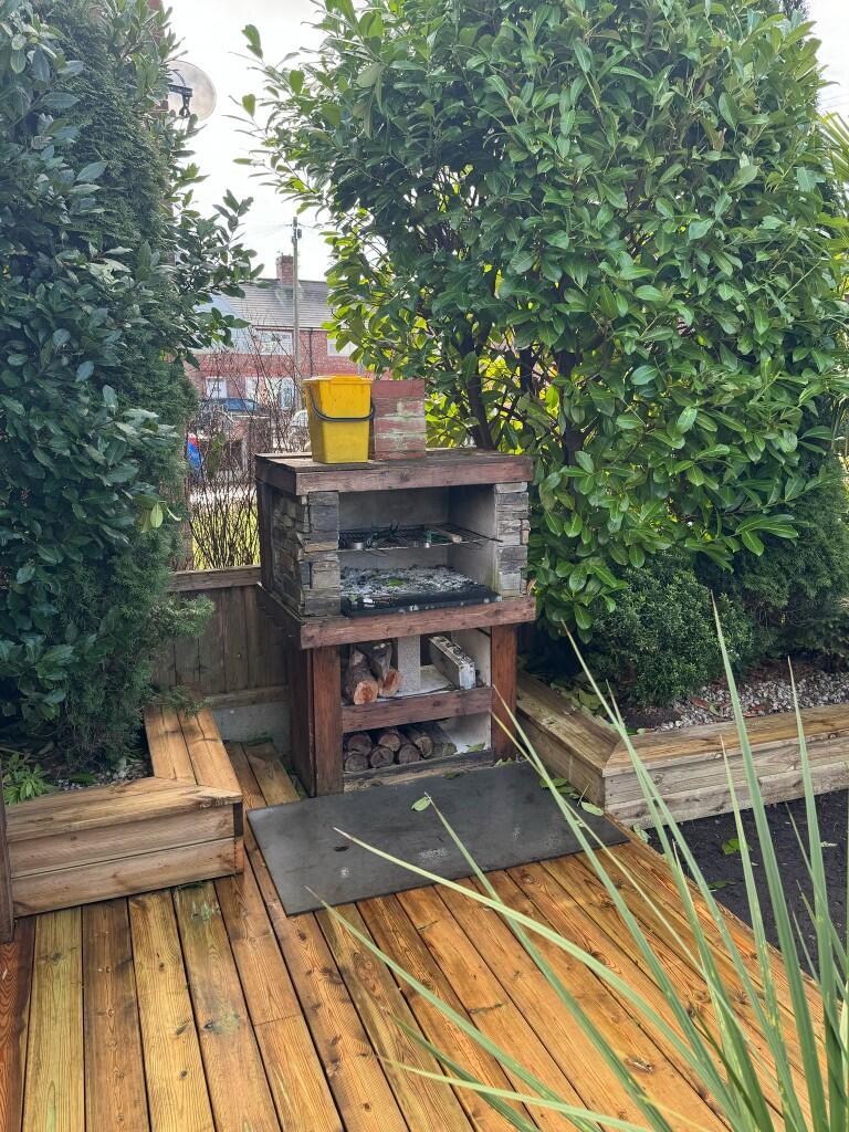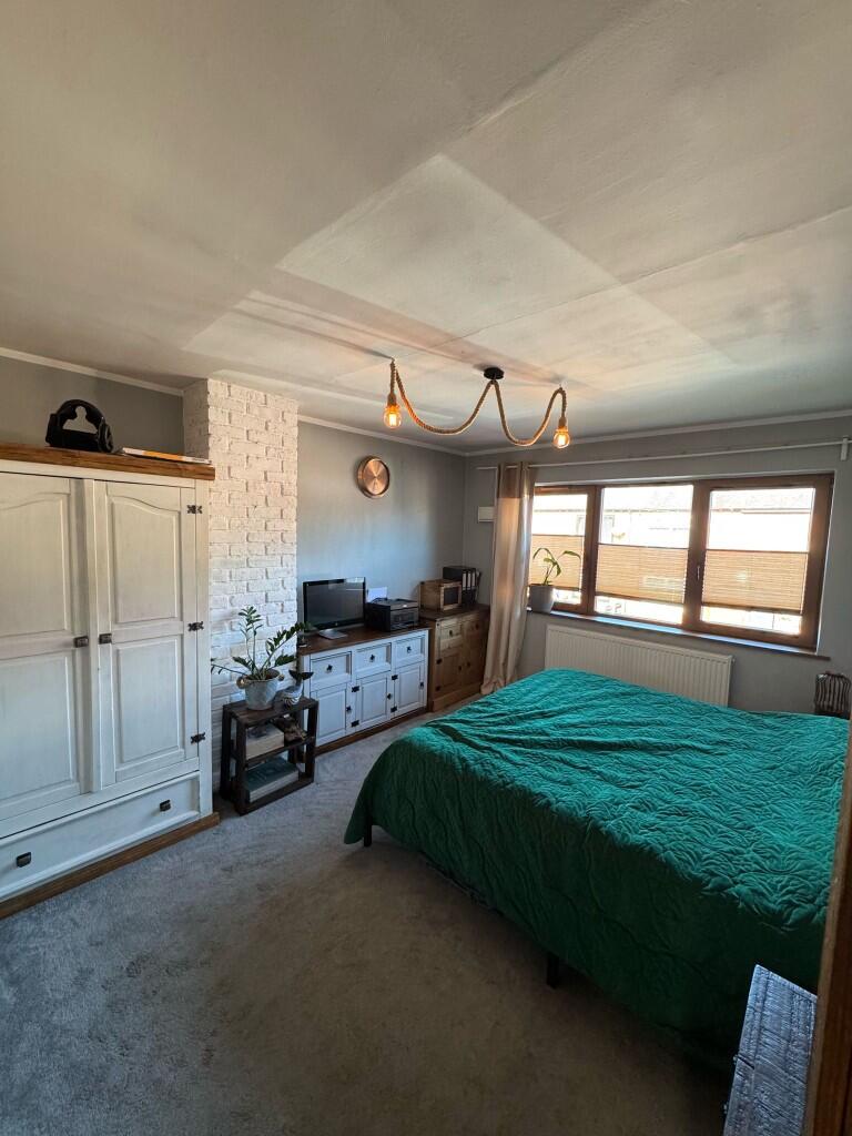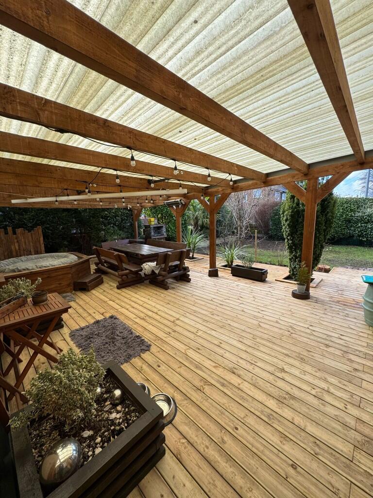 The property appears to be in good condition, with recent renovations evident in the images. The kitchen and bathrooms have been updated, and the property has a modern feel. There is also a large garden with a patio area and a shed.