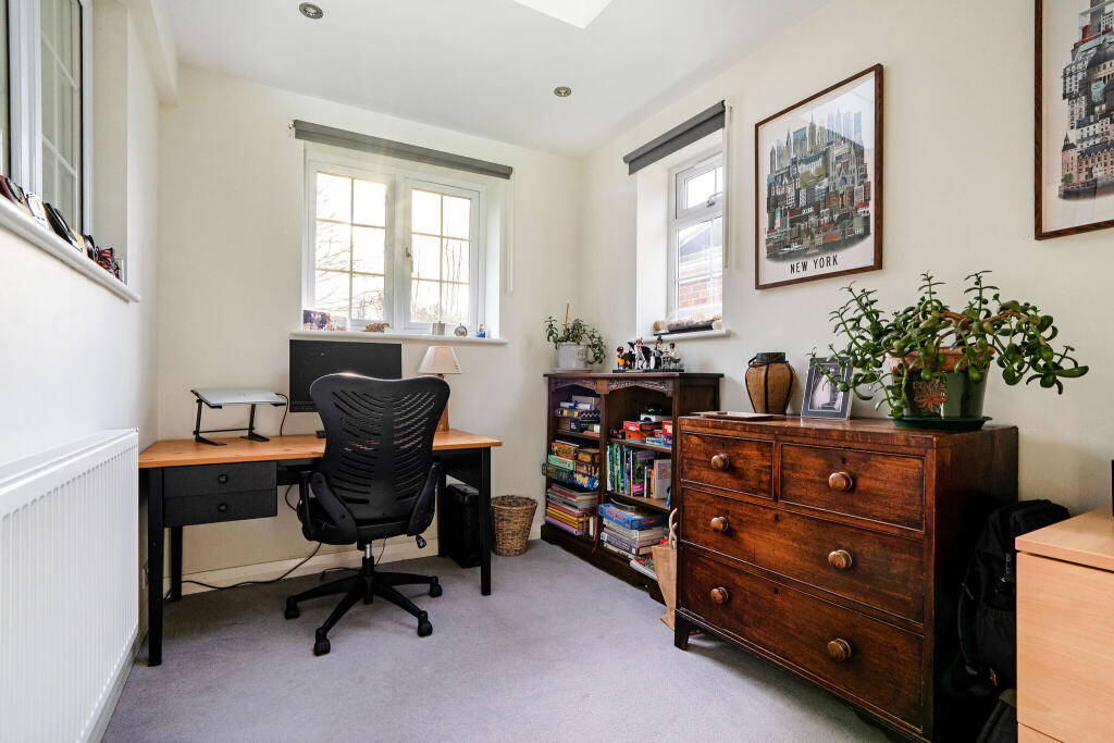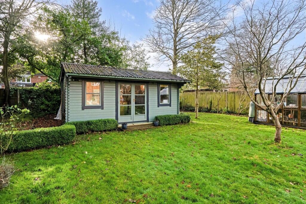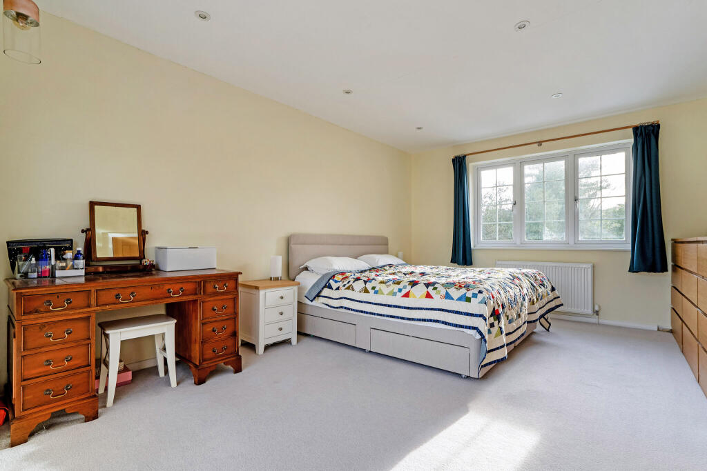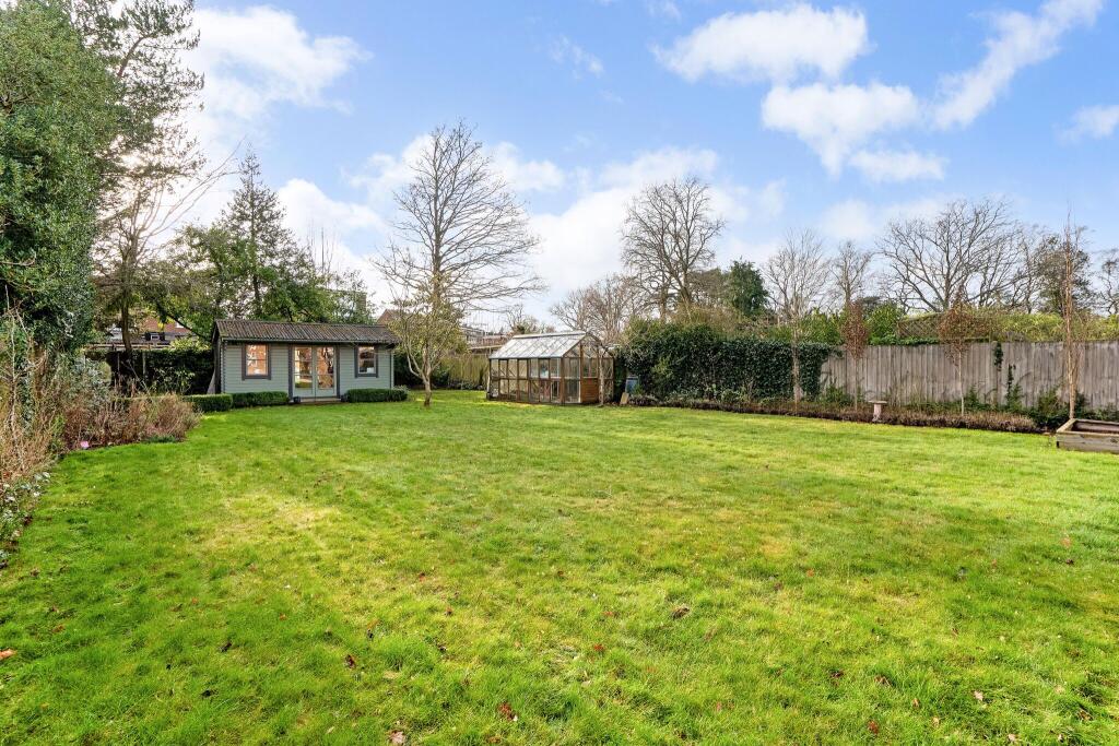 This four-bedroom detached house located on Leawood Road in Fleet, Hampshire is presented in good condition, benefiting from a recent modernisation. The property’s key strengths are its location within proximity to high-rated schools and Fleet town centre, coupled with a substantial garden including a patio, lawn, shed and greenhouse. The interior photographs reveal a modern kitchen and contemporary bathrooms. The living spaces appear bright and well-proportioned. The property’s presentation is family-oriented and could suit families seeking a move to the area.